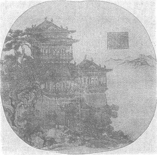 元。夏永绘。绢本墨笔。纵25厘米,横26厘米。北京故宫博物院藏。夏永,字明远,一作名明远,钱塘(今杭州)人。大致生活于元至正年间,擅界画,又能以发绣图。画风“细若蚊睫,侔于鬼工”是王振鹏以后的界画高手。此图描绘岳阳楼的雄奇景观。岳阳楼位于湘北洞庭湖畔,是江南一大名胜,历来有“洞庭天下水,岳阳天下楼”的美誉。图中岳阳楼临对烟波浩渺的洞庭湖水,巍峨耸峙,左右碑亭托衬,背倚巨石高树。楼身壁起,以砖石砌就,殿阁叠建其上,柱廊轩敞,椽檩飞扬,雕梁画栋,精丽工巧。门窗启处,现出许多人影,有观景的,有品茗的,有对谈的,身形虽小,但造型准确。远山微茫,湖水平旷,岳阳楼更显得伟岸高拔、气势恢宏。此图用笔工细至极,线条严整缜密,丝毫不乱,是夏氏界画的代表作品,幅中有作者小字楷书《岳阳楼记》。款署:“至正七年四月二十二日,钱塘夏永明远画并题。”至正七年为公元1347年。此图曾经清人安岐和乾隆内府收藏。《石渠宝笈续编》著录。