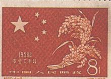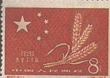 释义 | 一九五八年农业丰收 发行日期:1959年4月25日 齿孔度数:14 印刷版别:雕刻版 图幅30×20 全张枚数:120(10×12) 设计者:孙传哲 雕刻者:孙鸿年、孙经涌、唐霖坤、孔绍惠 印刷:北京人民印刷厂 (1)8分 麦 700万枚 (2)8分 稻 700万枚 (3)8分 棉花 700万枚 (4)8分 油料作物 700万枚 (1)-(4) 4枚全 注:四种图案按田字形排列,全张印刷图案各30枚。 |