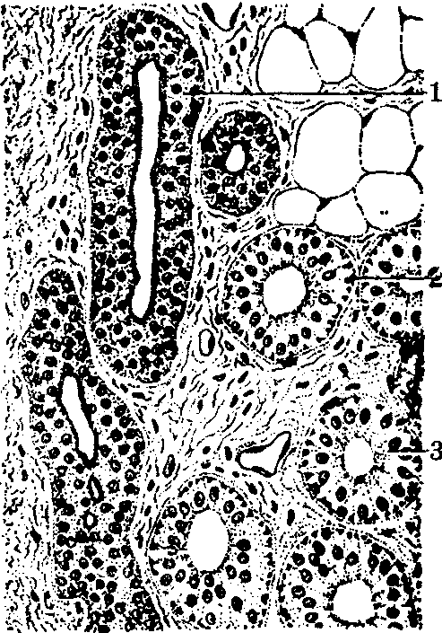 1.导管 2.分泌部的肌上皮细胞 3.分泌部