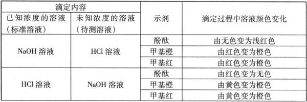 (4)中和滴定酸碱恰好完全反应时酸碱指示剂颜色的变化: