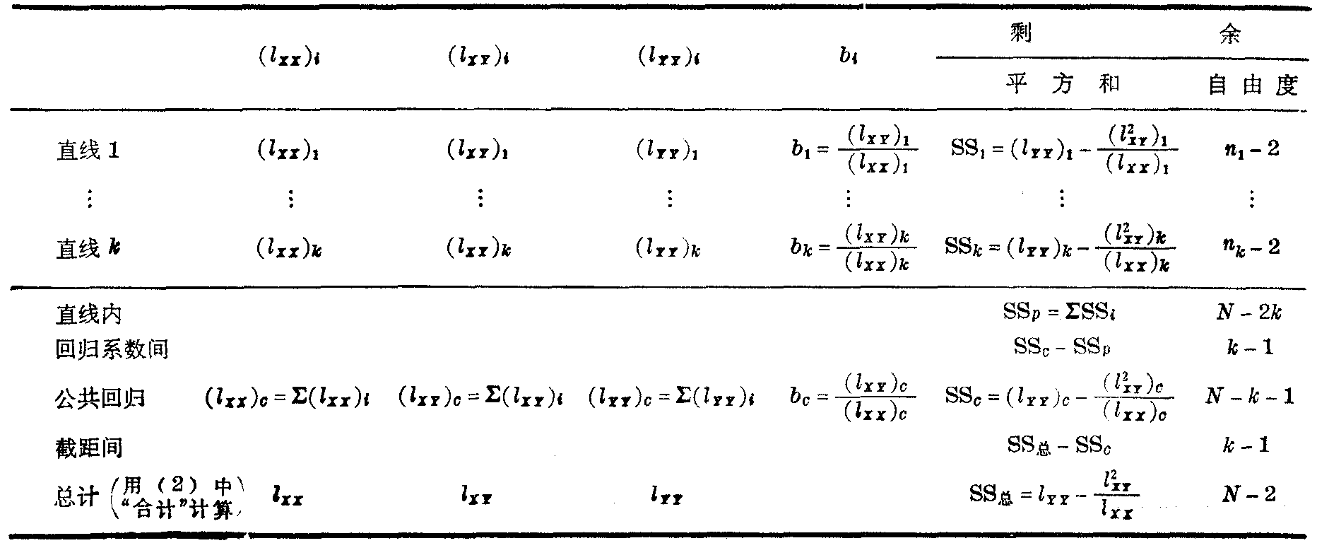 表2 四个直线回归方程比较的计算结果(按表1公式)