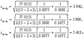 ai按式(8)计算,如a1=53.25-14.8895(2.550)=15.2818。 各saA-aB按式(9)计算,如 同理可算得: sa2-a3=2.1200,sa3-a4 =2.6719,sa1-a3=2.4182,sa2-a4=2.5286,sa1-a4=2.2358。 将ai由大到小排列: a3=19.3101,a1=15.2818,a4=11. 6202,a2=8.5822。 按式(7)作a3与a1比较, 表5 各截距的两两比较