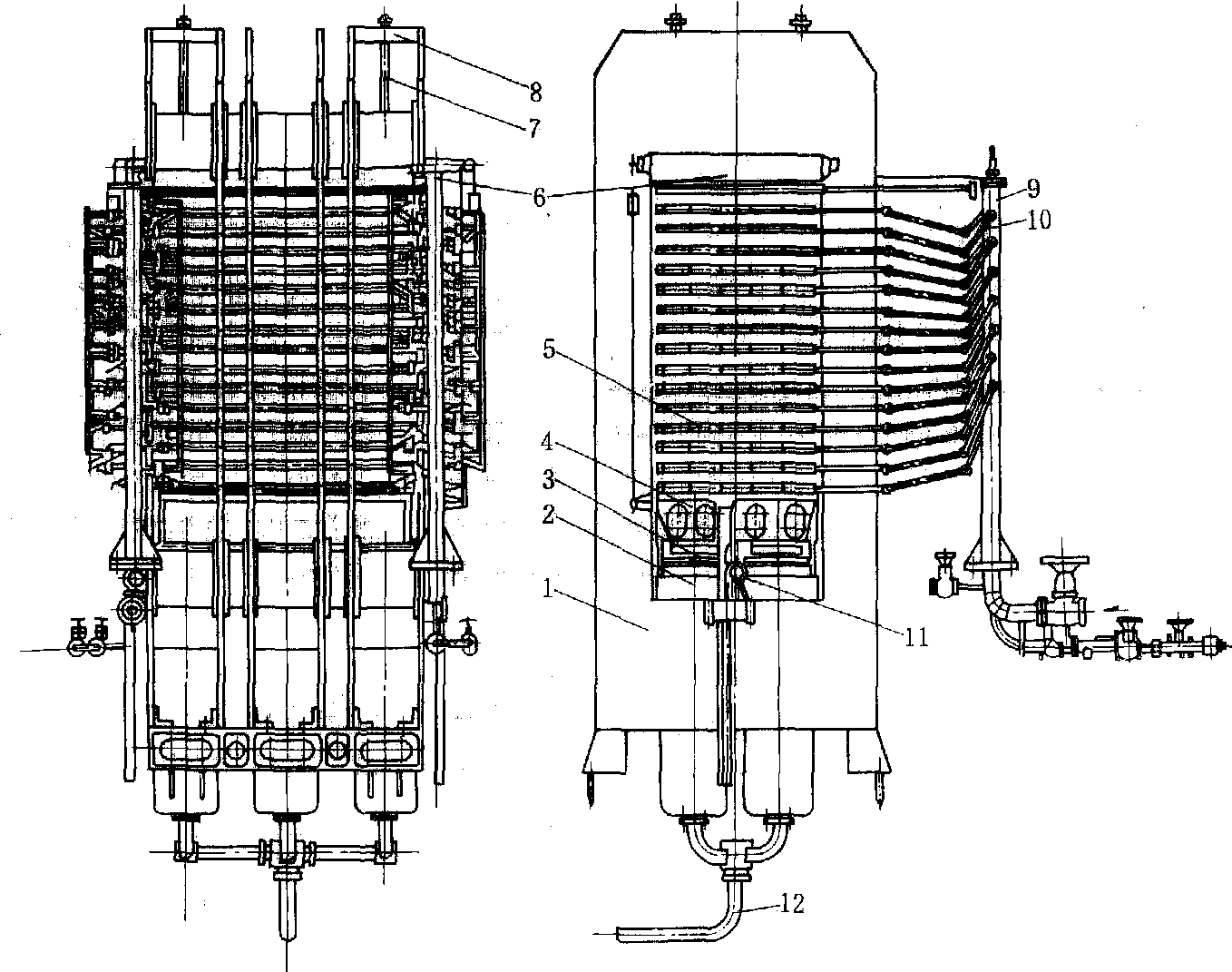 释义 | 多层热压机multi-opening hot press由多块热压板组成对多组板坯进行加压加热的热压机械。是人造板工业中应用最广泛的主机。全称为多层加热液压机。在木材加工工业中压制模压制品和弯曲木等也常用该设备。 多层热压机 油缸 是液压执行机构,承受很大的工作压力,缸体一般采用铸钢件或锻钢件。 柱塞 工作表面要求有良好的精度和光洁度,表面镀硬铬以提高耐磨性和抗腐蚀性能。有的压机在柱塞顶部有环形喷水管,用以冲洗和冷却柱塞。密封圈通常采用V形橡胶圈,新型的热压机采用聚氨酯橡胶制成的U型密封圈,使用寿命较长。 热压板 必须具有足够的强度和刚度,常用厚钢板制成,并要求上、下表平面平行,表面平整光洁,以保证制品的质量。热压板内有孔道,用以通入传热介质,孔道的回路经过特殊设计,以保证板面的温度均匀。压制不同的人造板制品,其板面温度亦各异,约100~200℃。 加热系统 根据热介质的不同,加热系统有多种型式,最常用的是蒸汽加热系统。对蒸汽管道的要求是在热压机启闭动作时,能正常地供给蒸汽、排出废气,并能保证密封。常见的连接管是伸缩管式和曲臂管式,伸缩管式占地小,结构简单,但易泄漏;曲臂管式密封性好,但尺寸较大。20世纪70年代以来,有的热压机采用金属编织软管,密封性好,但价格较高。 液压系统 多层热压机的液压系统要满足根据工艺要求制定的加压曲线的要求,在闭合、升压、保压、卸压各阶段提供一定量的压力油,因此在液压系统中配备有高压泵、低压泵、控制泵、充压泵和各种液压阀,由电气控制实现泵、阀的自动工作循环。为满足各种工艺要求,提高生产率和控制制品的厚度,在液压系统中还可采用各种技术措施,如蓄压器、变量油泵、液压伺服技术、总行程控制等。 同步装置 为保证压机活动横梁各处能同步升降,活动横梁上一般均有同步装置,有刚性导向式、连杆式、齿轮齿条式、液压平衡式、电液平衡式等,其中以齿轮齿条式应用最广。 闭合机构 大型多层热压机闭合速度很高,在热压板高速启闭时易产生气流吹出坯料和吸入废纤维等现象,而且因为底层热压板闭合早,制品会出现胶料预固化现象,同时闭合机构可以克服这些缺点。有肘杆式、铰接杠杆式、塔轮式等多种型式,其中以带液压补偿器的肘杆式同时闭合机构应用最广。 装卸板机 层数较高的多层热压机必须采用装卸板机,否则无法形成连续和有节奏的生产,在纤维板和刨花板的热压工序中,装卸板机更是不可缺少的。装卸板机分为无垫板式和有垫板式两大类。无垫板装卸板机型式很多,以同步皮带小车式和托板式为基本型式。 虽然在人造板工业中出现了单层平压压机和连续式压机,并不能影响多层热压机的广泛应用和技术发展,它仍是人造板工业中应用最广泛的主要设备,特别是在大型的生产线上。20世纪80年代以来多层热压机的发展趋势是:❶继续向高层和高速发展。如胶合板压机层数高达90层,闭合速度达到600~700毫米/秒。为避免建设高厂房、深地坑,还出现了卧式多层热压机。 ❷热压机向高精度发展。采用各种机械、电气、液压的测量和传感手段、压机的工作精度和制品的质量有很大的提高。 ❸自动化程度不断提高。例如压机本体、液压系统、装卸板机、运输设备组成一个自动控制工作系统,性能完善,控制手段先进。新式热压机采用可编程序控制器和电子计算机控制,是人造板生产线中自动化程度最高的工段。 |