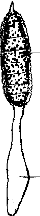 多胞锈菌属 1.冬孢子 2.冬孢子柄 |