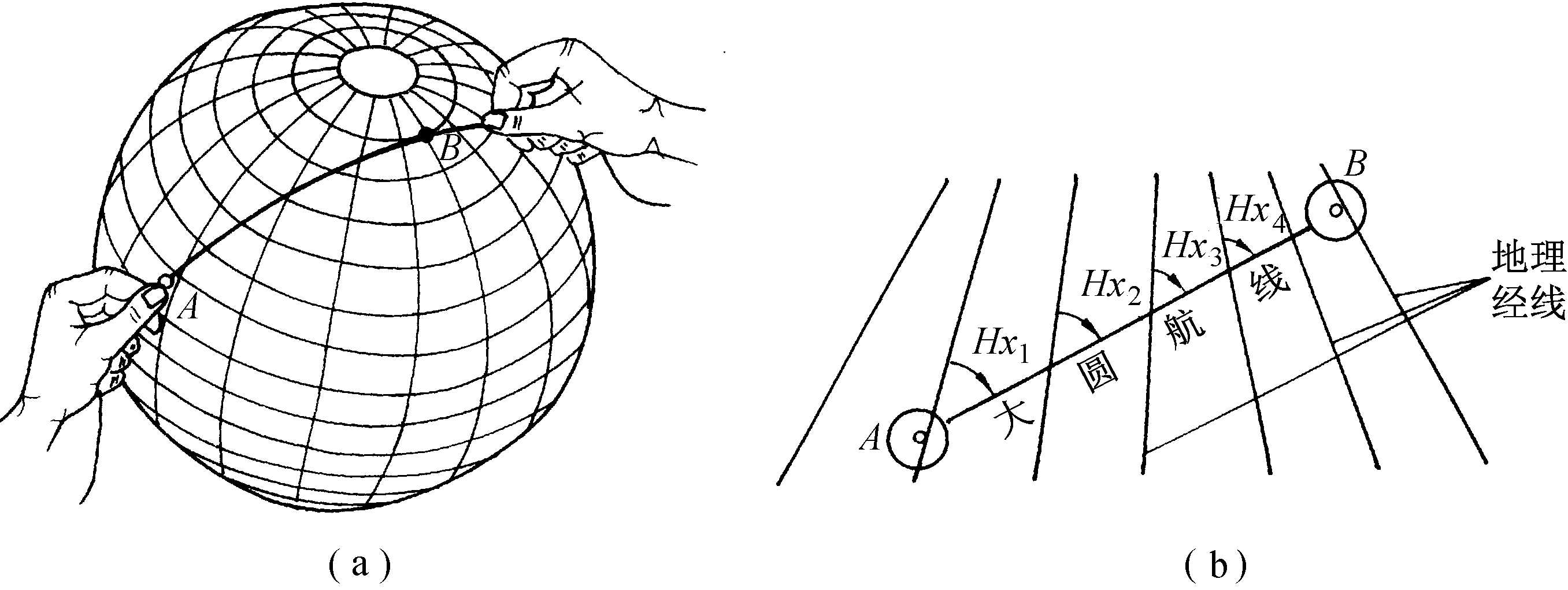 释义 | 大圆航线 大圆航线great circle track船舶沿着地球上两点之间最短距离航行的接近大圆弧的“航线”。由于地球上除赤道和子午线以外,大圆弧与所有子午线的交角都不相等,船舶沿大圆弧航行,必须不断地改变航向,这在实践中很难做到,因此,将大圆弧分成N段,每一段按恒向线航行,分段愈多,航线愈接近大圆弧,所以大圆航线是近似大圆弧的航线。航海实践中,一般以经差5°或10°一天左右的航程作一分点。大圆航线一般应用于中、高纬度及横跨经度较大的海区。 ☚ 恒向线航线 混合航线 ☛ 大圆航线 大圆航线great circle course地球表面航线起点与航线终点的最短连线。如图(a)所示,亦即地球表面两点与球心构成的平面与地球表面相交形成的大圆圈的一部分。其特点是航线距离最短,但航线角各处不相等,如图(b)所示。在远距离飞行中,保持固定的初始航线角飞行,将会偏离预定航线,所以需要根据航线角的变化而修正飞行航向。实际飞行中常常采用大圆航线,以便缩短航程节省燃油。 大圆航线 ☚ 跨音速飞行 等角航线 ☛ 大圆航线舰船沿着起航点与到达点的地球大圆弧航行的航线。在几何距离上,大圆航线最短。通常在大洋航行时采用。 |