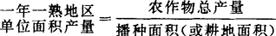字词 | 一年一熟地区单位面积产量 |