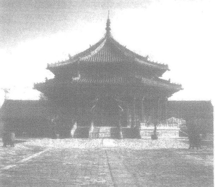 释义 | 大政殿沈阳清故宫早期建筑之一,创建于后金天命十年(1625),初称“大衙门”。天聪十年(1635)定宫殿名时称笃恭殿,后改此名。此殿位于沈阳故宫东路建筑的最北端,建在约1.5米高的须弥座式台阶上。殿顶为八角重檐攒尖式,上铺黄琉璃瓦加饰缘瓦边。顶瓦上置相轮、火焰珠,八条垂脊上的鞑人,殿内降龙藻井、梵文天花等融合了汉、满、蒙、藏等多民族建筑艺术,而此殿的门、窗,均为隔扇式,并用 “高丽纸”糊在门、窗棂外,则为典型的东北地方特色。是殿为故宫大殿,清初凡皇帝登基、颁诏、命将出师等重大典礼俱在此举行。入关后清帝东巡盛京时亦至此举行庆典活动。 大政殿 大政殿沈阳清故宫早期建筑,创建于后金天命十年 (1625),初称“大衙门”。天聪十年 (1635)定名为笃恭殿,后改称此名。位于东路建筑最北端,建在约1. 5米高的 “须弥座”上,殿顶为八角重檐攒尖式,满铺黄琉璃加绿剪边,顶瓦上的相轮、火焰珠、八条垂脊上的鞑人、殿内降龙藻井、梵文天花、殿出八角等则融合了汉蒙藏满等多民族的建筑艺术。清初,凡皇帝登极、颁诏、命将出师等重大典礼俱在此举行。 大政殿 大政殿原名 “大殿”。位于沈阳故宫东路。为东路主体建筑,两翼辅以方亭十座,组成一组完整的建筑群。创建于努尔哈赤迁都于沈阳之初,崇德元年(1636年)定名为“笃恭殿”,康熙时改今名。形制为一座八角重檐攒尖式大木架结构的亭式建筑殿宇。殿顶为黄琉璃瓦镶绿剪边,十六道五彩琉璃脊,亭顶饰有宝瓶火焰珠,在八条彩脊上各镶有蒙古力士一人牵着铁链面朝殿顶,意为“八方归一”。殿身八面有红漆木隔门组成,为“斧头眼”式雕饰,周围绕以青石雕栏,下为须弥座式台基。正门前雕双金龙蟠柱,造型极为生动。殿内为砌上明造,有极精致的斗栱、藻井、天花。天花板上绘有喇嘛教的“梵文”和圆寿、喜字等,中间为降龙藻井。大殿前是一块南北长一百九十五米,东西宽八十米的空地,正中辟为甬道,东西排列十座方亭,通称“十王亭”。自北而南,东为左翼王亭、镶黄旗亭、正白旗亭、镶白旗亭、正蓝旗亭。西为右翼王亭、正黄旗亭、正红旗亭、镶红旗亭、镶蓝旗亭。靠近殿前的东西二亭是左翼王和右翼王议政之处,其余两边的八亭是当时八旗首领办事的地方。这种出自八旗制度的建筑布局,是沈阳故宫的特色,也是早期八旗兵制在宫殿建筑中惟一的历史古迹。清仁宗诗曰:“大政据当时,十亭两翼张,八旗皆世胄,一室汇宗潢”。正是极好的写照。 沈阳故宫大政殿 ☚ 沈阳故宫 凤凰楼 ☛ 大政殿 大政殿清盛京皇宫中的主要宫殿。建于清太祖努尔哈赤时代。大约与汗宫同时建成。皇太极即位后续建皇宫,在已建成的大政殿等建筑以西继续扩建,遂形成将大政殿等撇于皇宫大内以外的格局。据《清实录》、《满文老档》等文献记载,大政殿也称笃恭殿、大衙门、大殿。这是一座八角重檐攒尖式殿宇,建筑在1.5米高、雕刻精致束腰的须弥座台基上,绕以荷叶净瓶石栏杆。台基上立朱红圆柱,各间为“斧头眼”隔扇门,前面两柱有金龙盘绕。殿内正中置宝座、屏风,屋顶正中为降龙藻进,彩绘梵文和福、寿、垚字天花。大殿屋顶黄琉璃瓦镶绿剪边,中间为相轮宝珠和八个力士,并系有八条铁链,联络八条彩脊,象征着八方归一。大政殿前列置十五亭 (也称八旗亭),其中最靠近大政殿向前略为突出的两座亭子是左、右翼王亭,其后东侧依次是镶黄旗亭、正白旗亭、镶白旗亭、正蓝旗亭; 西侧依次是正黄旗亭、正红旗亭; 西侧依次是正黄旗亭、正红旗亭、镶红旗亭、镶蓝旗亭。大政殿与十王亭构成的东路一组院落,体现了后金汗与八和硕贝勒的关系,也是八旗制度在宫殿建筑上的反映。此殿是努尔哈赤时的重要宫殿,在这里举行皇帝继位、颁布重大政令、迎接凯旋将士、举行国宴等仪式。天聪元年 (1627) 元旦,皇太极新君即位受朝贺之仪就在此举行。顺治元年 (1644),六岁的福临入嗣大统,乘辇至大政殿登基即皇帝位。清入关后,康熙、乾隆、嘉庆、道光诸帝多次东巡盛京,并在大政殿举行隆重庆典。今殿内高悬之金漆巨匾“泰交景运”,就是乾隆帝东巡盛京时所题。 ☚ 盛京皇宫 大清门 ☛ |