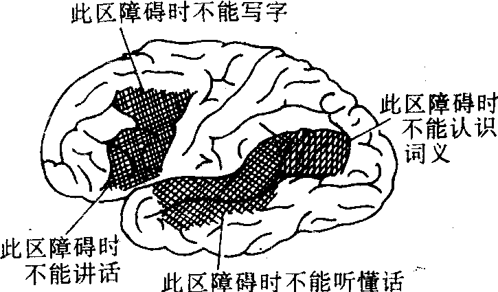 释义 | 大脑两半球的职能分工 大脑两半球的职能分工很久以前,由于两侧大脑半球的形态和结构基本相似,以及两侧大脑半球均与身体对侧的感觉和运动机能有关,因而,没有可能设想两侧半球在高级机能上会有差异。直至上一世纪,由于临床发现左、右半球损伤后对语言功能的影响不同,才提出两侧半球功能有所不同的看法。因为左侧半球损伤后出现语言障碍,而且不同区域损伤出现的语言障碍表现不同(见图1.12-7),例如不能听懂话(但可以听见声音)、不能认识字的词义(但能看见物体)、不能写字(但手的运动机能是好的)或不能说话(但能发音)等。但右侧半球损伤的病人却不出现语言障碍。于是认为左侧半球为语言优势半球,右侧半球为语言的非优势半球的说法。以后又发现上述规律主要适合于习惯用右手劳动的人,因而,较全面的说法是:在右利手人群中,左侧半球是语言优势半球。本世纪六十年代中,美国学者斯佩里等在分裂脑病人(将两侧半球间的联系纤维切断以治疗严重而顽固的癫痫病人)上,同时分别研究互无联系的两半球的机能时进一步发现,两侧大脑半球的机能,除语言外,还有其他一些不同的方面。此后,逐渐确立了两半球在职能上是有所分工的说法。1981年斯佩里因在这方面的贡献获诺贝尔奖就是很好的证明。目前认为:大脑两半球在机能上具有高度专门化,分工明确,各有特点。对大多数人而言,左半球在语言、逻辑思维和分析能力等方面起决定作用;右半球缺乏语言表达能力,但善于解决有关的空间问题,是音乐、美术、几何-空间的知觉辨认系统,即右半球主要负责直观的、非语词性认识功能的活动。 图1.12-7 人大脑皮层关于语言功能的区域 ☚ 睡眠时间 小儿语言的形成与发展 ☛ |