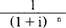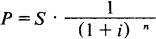 此法用于一次偿还未来值的贴现计算。如,已知几年后的数额为S,利率为i,求现值P。