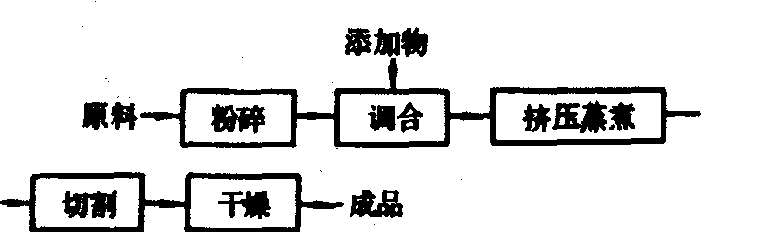 释义 | 大豆组织蛋白加工soybean textured protein processing采用机械和化学方法,改变大豆中蛋白质组织结构形式,使之成为蛋白质排列整齐,具有方向性及纤维状蛋白食品的过程。大豆组织蛋白又称“植物蛋白肉”,以全脂、半脱脂及低变性脱脂大豆粕,浓缩蛋白或分离蛋白为原料,经粉碎(也可不粉碎),加水及添加剂均匀混合后,进入螺杆式挤压蒸煮机,在螺杆的混合、混炼、挤压、剪切等的高温瞬时作用下,发生蛋白质变性,制成的蛋白食品,具有层状结构,食用时有类似肉状组织的咀嚼口感。大豆组织蛋白的生产方法很多,比较常用的有挤压蒸煮法和纺丝法。 图1 大豆组织蛋白生产工艺流程 原料经粉碎调合后进入挤压蒸煮机,在挤压过程中,经过混合的物料,受螺杆挤压、剪切以及外加热源的共同作用,产生塑型化。同时去除大豆中所含的多种有害物质(如胰蛋白酶抑制素,血球凝聚素等),以提高人体对蛋白质的吸收和消化能力。经挤压的物料,在挤压蒸煮机出口处迅速减压喷爆,因而容易去除大豆中的豆腥味。最终产品的蛋白质分子排列整齐均匀,具有同方向的组织结构。挤压蒸煮机有单螺杆和双螺杆两种形式,生产大豆组织蛋白时,普遍采用单螺杆式挤压蒸煮机。单螺杆挤压蒸煮机由进料段、压缩段及熔化段组成(图2)。进料段将料喂入并依靠螺杆的运动将物料向前挤压推进到开始压紧,物料在压缩段受到螺杆的不断挤压,又受到外加热源和物料与螺杆及螺筒内壁摩擦生热的作用,温度逐渐升高。起初的温度应控制在70~100℃,然后继续加温到120~150℃,原料开始成为胶状融合体。在熔化段出口前10~20秒停留在锥形模头内受到160~230℃的高温作用,多余的水分迅速形成蒸汽,产生较大压力。此时蛋白质变性,在出口处由于突然减压,物料中水分急剧汽化,便形成了组织化大豆蛋白。 图2 单螺杆挤压蒸煮机结构图 1.喂料斗;2.传动装置;3.螺旋轴;4.机壳体;5.壳体夹层;6.温度计; 7.压力计;8.圆孔挡板;9.螺圈 挤压蒸煮的产品可以按照要求切割成多种形状,如圆柱形,小方块,条片状等。切割的形状是通过改变挤压蒸煮机出口的模板孔型和设置在模板处的变速切割刀片完成的。 为保证产品安全贮存,需将产品烘干到安全水分含量(8%~13%)以内。大豆组织蛋白的蛋白质含量约50%左右。 在组织蛋白生产中也有采用二次挤压蒸煮工艺,即将经过第一级挤压蒸煮的蛋白制品立即排除水分,再继续进入二次挤压蒸煮机作高温快速处理。最终产品在口感与营养价值上更近似肉制品,但动力消耗大,操作要求高。 纺丝法 制取大豆组织蛋白工艺,是将分离大豆蛋白溶于碱性(纺丝液)中,然后,溶解的分离大豆蛋白液,通过许多小孔的纺丝喷头,经过小孔挤入含有食盐的醋酸液中,蛋白质遇酸凝固析出。在形成丝状的同时,使其延伸,并使分子在同一方向排列,形成纤维束状态。在湿态纤维物料中加入适量的粘结剂,如热凝性蛋白、淀粉、鸡蛋清、糊精等,增加纤维表面的结合力。同时加入调味剂和色素等,使其均匀地分布于纤维状蛋白中。最后成型、加热、冷却即可制得大豆组织蛋白。 |