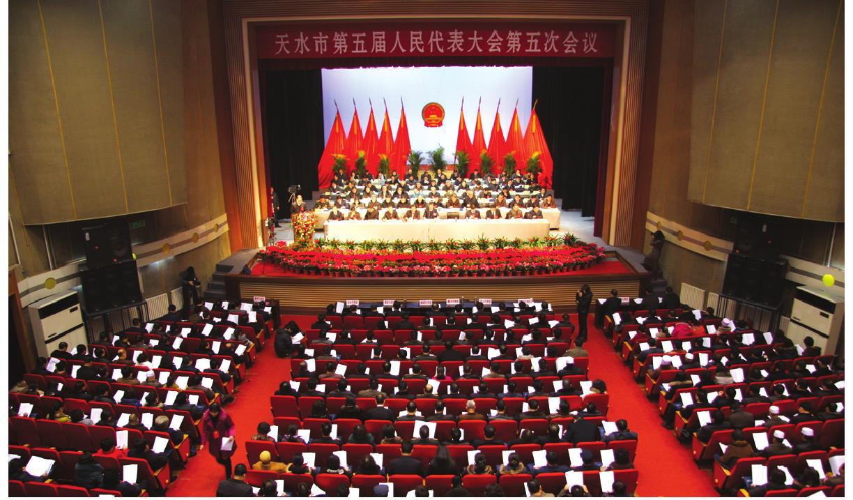 会议名。天水市第五届人民代表大会第一次会议于2007年2月2日在秦城区召开,参会代表351人。会议听取和审议市人民政府工作报告,听取和审议天水市人大常委会工作报告、天水市中级人民法院工作报告和天水市人民检察院工作报告。会议选举赵春为市人大常委会主任,张广智为市长,袁智云为市中级人民法院院长,刘建明为市人民检察院检察长。第五届人民代表大会期间(2007年2月—2011年11月),共召开7次大会。