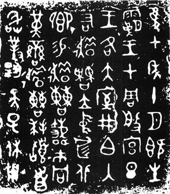 【赏析】: 西周中叶,靑铜器铭文大篆趋于成熟,一方面是文字结构逐渐固定和统一,一方面是在整体章法上追求均匀整齐。《趞曹鼎》铭文在字形上沿袭了西周早期的风格,结构上无更大的变化,但在排列上趋于整齐。鼎铭文字总的看来显露的是一种宽博、凝重的气势。每个字都不刻意追求疏密的变化,而是在笔画与笔画之间组成了一种平衡、均匀的结构,正由于此,所以笔画多与笔画少的字便自然有了大小之别,这就使经纬排列整齐的格局中产生了错落跳动的气韵。 |
