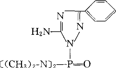释义 | 威菌磷triamiphos又称三唑磷胺。有机磷杀菌剂。化学名称:5-氨基-3-苯基-1-(双-N-二甲基磷酰胺基)-1,2,4-三氮茂。化学结构式如下。原药为白色结晶,在水中溶解度为0.25 g/L(20℃),能溶于大多数溶剂中,室温条件下在中性或弱碱时稳定。遇强酸则易水解。1960年由荷兰飞利浦 — 丹佛尔公司推广,内吸性杀菌剂,主要用于观赏作物的叶面喷洒防治白粉病,如玫瑰白粉病。亦可防治叶螨,对雄性大鼠急性口服LD50为20 mg/kg,对人畜毒性大。但经皮毒性小,白兔经皮LD50为1 500~3 000 mg/kg。在施用浓度下叶面喷洒对植物安全,灌根时对植物有药害。 |