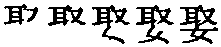 【提示】耳,位于字或部件的左边时,末笔的横改提;中间的两横,宋体与左右两边相接,楷体与左边相接,与右边相离。女,位于字下时,宋体末笔的横与撇相接,撇笔上端不出头; 楷体末笔的横与撇相交,撇笔上端出头。 *娶qǔ11画 女部 把女子接过门结婚: ~妻|~亲|~媳妇。 娶 ☚ 嫁 婚 ☛ 娶qǔ古代只用取字。《说文》说是“取妇”。约商代末年《易经》中的卦辞、爻(yáo,旧读xiáo)辞中有“取女”的话。原始社会抢妇女为妻,现代兄弟民族还有仪式残留。奴隶社会或以俘为妻。甲骨文有从女从取的字不是娶字,是娵(jū)字,商王妇的名字。小篆以后的娶字,从女从取,取亦声。后来指把女子接过来成亲。如:娶妻。现代男女平等,说结婚(婚本作昏,也指原始社会黄昏抢妇)。 娶★常◎常