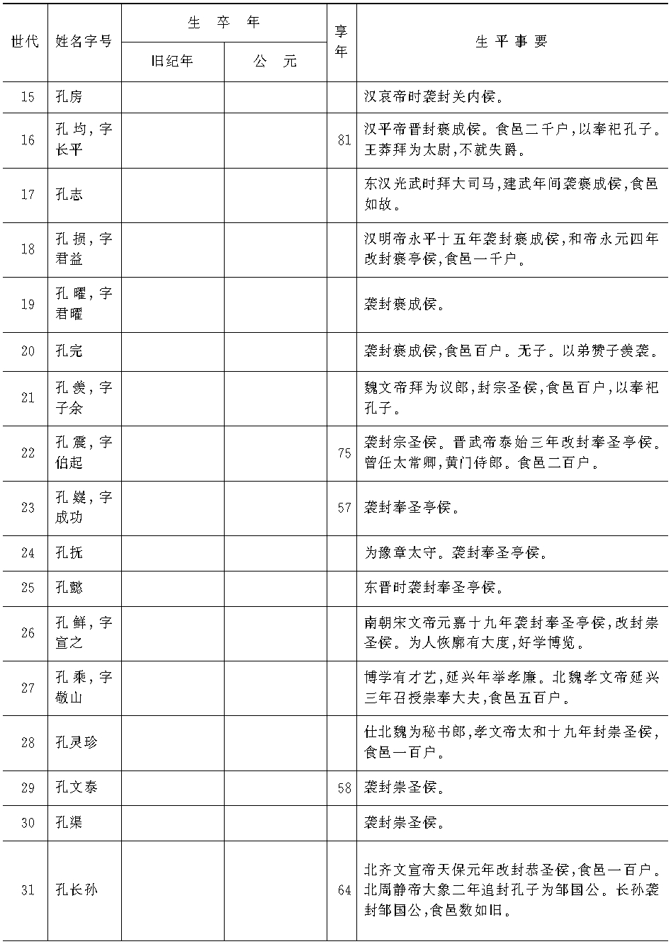 孔子世系表