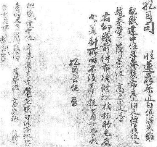 释义 | 孔目司贴唐代商品税帐单。纵28.8厘米,横37.5厘米。纸本。原 件为正副本,现已装裱于一起,系墨书行草体。正文原有三方朱色官印,因年代久远已模糊不清。文中记有 “孔目司惟莲花渠近白俱满尖鸡,配织,建中伍年(784)春装布壹佰尺……”。“右仰织前件布。准例放,掏拓肋屯及小小差科所,由不须牵税”等。该件于1902—1914年间在新疆地区发现。现藏旅顺博物馆。 孔目司帖 |