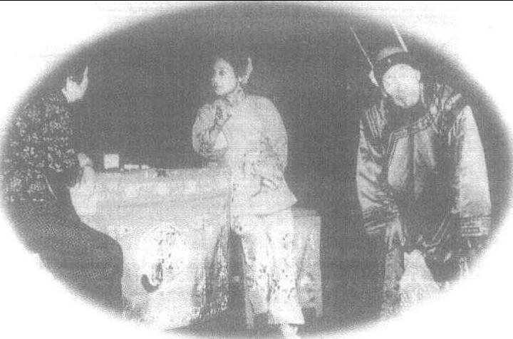 孙宝才(右一)刘淑慧、孙雅君(中)表演彩唱莲花落《赴善会》