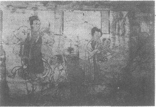 释义 | 孝子故事图(董永与郭巨)壁画 孝子故事图(董永与郭巨)壁画金明昌二年(公元1191年)。纵35厘米,横50厘米。山西省闻喜县下阳村金代1号墓墓室东壁壁画。1963年发掘。此图为两组故事,左为董永卖身葬父,遇仙女相助的故事。图中董永长跪于地,双手拱于身前,抬头仰视,一幅感恩不尽的神情。他的左上方为一仙女,头戴花冠,身着宽袖红衫,脚踩祥云,亭亭玉立,俯视董永,面含眷恋之情。右为郭巨对养母尽孝,欲埋亲生儿子得黄金的故事。画面上郭巨赤裸上身正在挖坑,其妻手抱婴儿,面带悲戚之色。不知世事的婴儿在母亲怀中欢蹦乱跳,使人倍感不忍。两组故事显系民间艺人的作品,神态生动,线条简练概括,颜色鲜艳。 ☚ 白虎与人物图壁画 道童图壁画 ☛ |