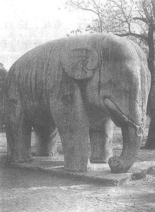 明。高338厘米。江苏省南京市明孝陵神道石像生。由一块巨大的青石雕制成。石象扇耳横贴于肩,头微垂,长鼻触地后内卷,坚牙紧拢象鼻,俯视着地面,稳稳地立于石板上。体态高大,造型简括洗炼,浑圆丰满而逼真,质量感颇强,几乎能够以假乱真。象列于帝陵石像生之列,始于北宋,用以象征皇帝拥有善良顺从的臣民和辽阔广袤的疆土。明孝陵见“明孝陵”条目。