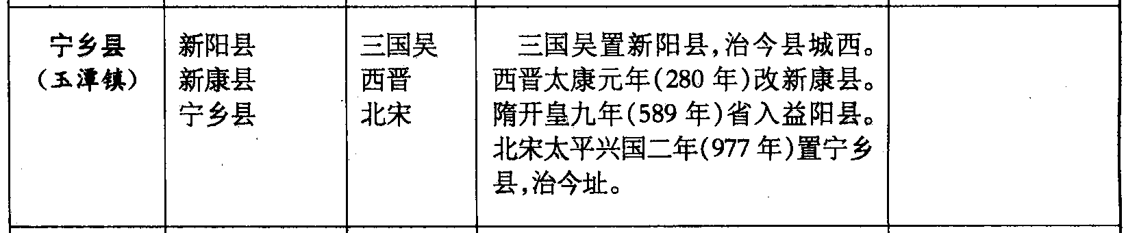 宁乡县(玉潭镇)新阳县新康县宁乡县三国吴西晋北宋三国吴置新阳县,治今县城西。西晋太康元年(280年)改新康县。隋开皇九年(589年)省入益阳县。北宋太平兴国二年(977年)置宁乡县,治今址。