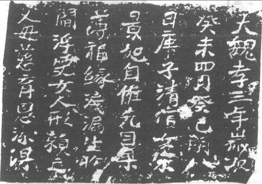 释义 | 宋景妃造像記宋景妃造像記 (局部) 北魏·孝昌三年 (527)刻。楷書九行,行七至八字不等 (或曰楷書十六行,行六至八字不等)。屬“龍門五十品”之一。現存河南龍門蓮華洞左壁。本尊為釋迦像,而所記為彌勒,自相矛盾,但尚可見樸素虔誠之信仰。書法甚妙,體勢横寬,沉着渾厚,筆勢生動,樸茂古雅,呈當時常見書風,又别具情味。允推 “五十品” 中佼佼者 |