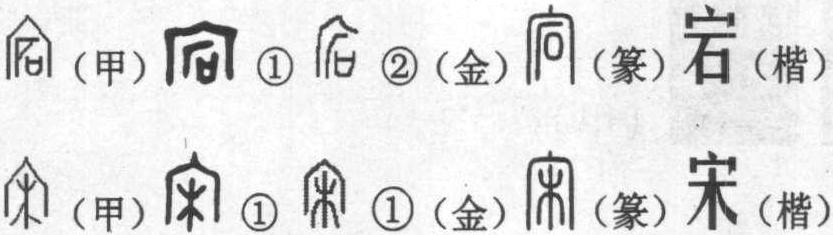 释义 | 宕宋 人类居处变革的诗情画卷 宕宋 人类居处变革的诗情画卷(甲) 中国的方块汉字字形引发和体现了中华民族的形象思维与中华传统思维方式及其生命力的存在。人们赋予 “宋” 这一 “木” 上支撑“宝盖”、方方正正、上下协调、端庄肃穆形体的人文含意要比它的原本意义宽阔得多。 宕与宋是两个从时间到内容都具有相当跨度的字。它反映人类早期和比较成熟以后在居所上的不同形式和变化。它记录着人类成长的脚步,字形和字义都浸染着中华文化的浓厚色彩。 宕,音荡。甲骨文的 “宕”,从 “宀” (音绵),从“ ![]() ![]() 在远古时代的人类幼年,刚从地平线上爬起来,没有太多改造自然的能力,不会为自己营造居所,天然洞穴只能是他们的栖身场所,过着与兽无异的群居生活。考古发现的北京周口店“山顶洞人”就是这样一个处境。广西是早期人类活动和生活的重要地区,这里发现的早期人类活动踪迹还有 “白莲洞人”; 来宾麒麟山盖头洞发现的一个人头骨化石;柳江通天岩山洞中发现一个人头骨化石和四个胸椎骨;马鞍山附近的三个洞穴中发现三个人头骨碎片和一些牙齿、股骨和髋骨等;荔浦苏村岩东洞发现一颗小孩臼齿;在北地苏乡九𣸤山溶洞中发现四颗人牙化石和柳州市东南部都乐岩蘑菇洞发现的人的臼齿和一段臼齿化石。另外,在云南西畴孤峰仙人洞发现五颗人牙齿;在山东乌珠台溶洞、贵州兴义猫猫山岩洞、浙江建江乌龟洞、河南安阳小南海石灰岩洞等发现的人骨化石和动物化石。这些都足以证明人类早期宕居的史实。 《说文》: “宕,过也。一曰洞屋。从宀,砀省声。”许慎虽然析形有误,但“洞屋”之释还是正确的。然而,“过也”之解的“过”(過)却使人难于理会,疑是“蜗”或 “迵”(音洞,有通透之意)字之讹误。 位于甘肃省陇东平凉,有一名山曰“崆峒”,那里有人类早期宕居的遗迹。山上有个雷声峰,当打雷时布滿山间的空洞,就使得雷声此起彼伏,连绵不绝而得名。崆峒山周围聚居的部落为空同氏。传说黄帝曾来此山问道于空同人广成子。据说殷商族也是空同民族的一支。崆峒人的窑居洞处,是黄土高原长期以来人文景观的一大特色。 文字是记录语言的符号系统,是对历史的写真与追记。“宕” 当然不是与宕居同时产生,那个时候人类是否有了系统的语言也很难说。宕居是人类最先利用自然山洞栖息的一种形式,后来随着改造自然能力的不断提高,才出现了诸如巢居、穴居、复居、良居、窑居、宋居、层居等居住形式。大概由于宕居已远离人类,生疏、淡漠与忘却的发生就成了很自然的事,故殷卜用作地名,宕在今河北省曲城县西,当时是商王的猎场,卜辞有“田于宕”。没有 “宕” 对人类早期的这一居处形式的追记与锁定,如今有谁还能知道我们祖先的那一段艰难困苦的历程呢? 金文❶的“宕”从宀,从石,可会意为石屋。金文 ❷的 “宕”从广(音衍,意同庵),从石,可会意为在石洞前接续一节草庵。小篆、楷书从宀,从石,一脉相承。 宕的本意是人类早期栖身的石屋。宕居时代是人类的幼年,处于蒙昧野蛮状态,个人行为惟一是维持和延续生命,因此宕有: (1)流动之意,晋皇甫谧《三都赋序》: “雷同影附,流宕忘反,非一时也。” 宕子即在外流浪的游子,三国曹植《怨歌行》: “借问叹者谁,自云宕子妻。” (2)放纵不羁之意。 (3)宕,久居滞留,故有拖延、延缓之意。 (4)宕居地面、洞壁凸凹不平,故宕有起伏不平之意。宕的宕居之本意早被历史的尘沙湮没,今人多用其引申之意。 宋,甲骨文、金文、小篆、楷书一脉相承,从宀从木,木在宀下,为会意字。甲骨文 “宀” 的外观是圆锥形房子的切面图,中间由一根木柱撑起,周围辐射型的椽木斜担于圆周形围墙之上,上边由草或草泥苫盖。或也是现今农村鞍间房子的侧视白描,顶端是马鞍形的房脊,向外延伸的是前后两面坡及其房檐,两边向下垂直的是前后檐墙。“木” 为一根顶梁的柱子。“宋”,送走了人类长期无见天日的穴居洞处,这是人类从地穴爬出以后在地平线以上所创造的奇迹。《说文》: “宋,居也。从宀,从木。” 宋居这种形制的建筑,早在六千年以前的西安半坡母系族落遗址就有发掘:一座房子由十二根已有分工的木柱支撑,列为整齐三排,每排四根,中四根高,形成“人” 字形两面坡,脊檩已达两山。顶部密布木椽,以茅草、草泥涂之。那个时候似乎尚未出现版筑技术,四面墙壁是用扎排木桩涂泥弥缝构成的。从结构看已经形成 “墙倒房不塌” 的牢固格局,并具有 “前堂后室”、“一明两暗” 的雏形。华夏民族后起的延续几千年的一木顶大厦的建筑风格大概就从这里肇始的。 “宋”的原本之意是人创造的一种建在地面比较先进的一种居室。宋音通耸,宋的寓意是高耸的房屋建筑,是屹立东方地平线上的宏伟工程,是宕、巢之居,穴、复之居与之相比而不能同日而语的伟大形象。因此,“宋”又成了一个相当惹眼与抢手的字,向来被王者所青睐。中国的方块汉字字形引发和体现了中华民族的形象思维与中华传统思维方式及其生命力的存在。人们赋予“宋”这一 “木” 上支撑 “宝盖”、方方正正、上下协调、端庄肃穆形体的人文含意要比它的原本意义宽阔得多。殷商时代,宋被一个小方国定为国名,但给国人没有带来多少好处,商王常常去那里围猎、作军事演习,