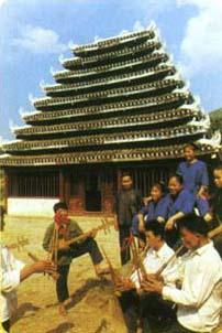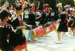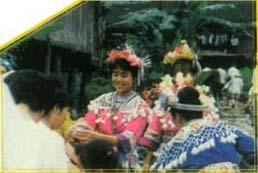 释义 | 三江民族风情 侗寨 侗寨别具一格。它不像瑶寨多坐落在高山。也不像汉族村庄多建在平地,而是散布在依山傍水的秀丽山区,居住得较为稠密,一般寨子有一二百户,大的寨子有五六百户。屋舍都是用杉木搭起,一幢挨著一幢。有的地方,晴天进寨不受日晒,雨天进寨,连斗笠也不用戴。住房也较为宽大,一般是三层,第一层(地层)圈牲畜,放杂物,第二层佳人,第三层存放谷物。游人远远望去,只见屋宇前低后高,鳞次栉比,连成一片,层层而上,如叠翠然。有趣的是,你从寨底或寨口向寨子了望,可以看到最远一排房舍的门窗。 农历立春这天,侗家要举行送春牛的仪式,家家修扫牛栏,用糯米酒饭喂牛。晚上舞”春牛”,用竹篾做骨架上面糊纸,做成牛头,用灰布缀棉绒做牛身。二人提有“立春”二字的大灯笼引路,二人合舞“春牛”,一群青壮年边走边表演各种耕耘动作。舞姿简朴粗犷,生活气息浓郁。 迎娶新娘,不备花轿,只派引路郎和押礼公挑著礼物前往,入暮到大约半夜时分,才将新娘接到男家。迎亲礼物也简单,一般三四十斤肉,二三十斤酒和一些菜肴。新婚出嫁前夕,鸡叫3遍,引路郎将新郎家的灯笼挂新娘房门上,连催三次,新娘依依不舍走出房门。上路前新娘剪下灯笼草绳,掏出早已编好的花丝带系上,表示心已和新郎相连。 “月也”和拦路歌 “月也”侗语,意为集体出访做客,农历正月和八月,一家派一名代表,由寨中有威望的人率领,集体到某村寨拜访,主寨用生产用具设制路障,双方摆开歌阵,主队以歌提问,客队用歌回答,对一次撤一次,如错,客队燃放鞭炮,表示歉意。入寨后,进行演侗戏,舞龙舞狮。联欢活动结束时,送至寨口又唱拦路歌,表示挽留,表现了侗族之间的团结友爱情谊。 侗家吃俗 侗族的饮食特点有二:一是离不得酸。泡缸酸就是用坛子装著酸水,把时鲜瓜菜放入坛中泡制成酸菜,然后食用。 酸鱼、酸肉是侗家食谱中的特有风味。每年八九月间,侗家把鲜鱼鲜肉洗净,放入坛子中。八一般腌制3-5年。而酸菜鱼则腌存几十年,用来款待贵宾。来侗乡旅游,若能吃到这样的酸鱼,那将是一大乐事。侗家人有句俗话:“十年酸鱼送老酒,做人一世也抵得。” 二是吃糯米。糯米饭是侗族人的主食。他们将糯米用清水泡涨至翌日清晨。由主妇把米滤干,放进锅内蒸熟。这蒸糯饭装在特制的大白瓜壳内,可以保持一昼夜的温软。又因糯饭干爽柔软,进餐时一般用手抓著吃。 打油茶 油茶是侗家喜爱的饮料。用糯米、茶油和茶叶,制成甘甜清香的油茶,可以提神醒脑,解除疲劳,还有祛寒暖胃,治疗感冒、腹泻的功效。在侗家做客时,主客围坐在桌边或锅台旁,由主妇动手烹调、分配和端送,第一碗油茶必须端送给长辈和贵宾,以表敬意,然后依次端送给其它客人,最后才是主人。吃油茶只能使用一根筷子,各人接到第一碗油茶后,必须等主人说一声“敬请”,才开始吃。吃完,则由主妇添茶。每人至少吃三碗否则会被认为对主人不尊敬。三碗后,若不想再吃,可以把筷子架在碗上表示,但连吃四碗则是对主人最大的尊敬。 踩脚求爱 融水的苗胞在对歌跳舞的过程中,为了试探对方心意,用脚尖轻轻地踩上姑娘的脚背,表示向她求爱。如果姑娘也用脚尖轻轻回踩男方脚背,就表示接受男方的求爱。相反,就是被拒绝了。 喊酒 在苗家的宴席上,苗胞在喝酒前都个个起立,手捧酒碗,齐声高喊:“哦呀哈,咿唏喝呀!咿唏喝呀!”这种风俗叫喊酒。有幸参加苗家宴席的人,无不被这种喊声感染而动情,一发举杯痛饮。 |