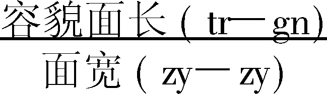 此指数表示面部容貌的长宽关系,此值越小,则面部越短。 容貌面指数=×100