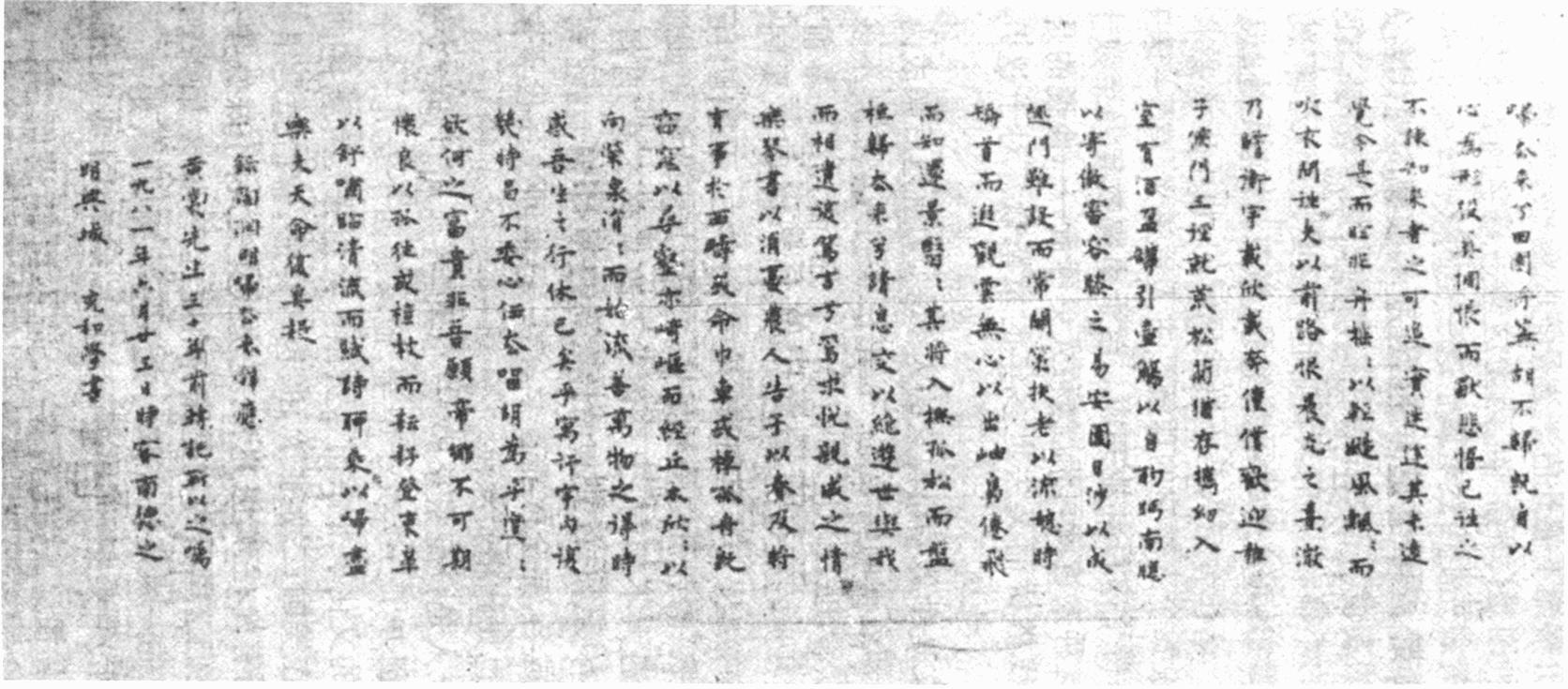 释义 | 宿诺 黄裳沈从文是个写文章的人。也许有人会觉得奇怪,写文章的人不就是作家么?不,这并不一定就是一回事,我在中学里就开始读沈从文的文章了。读过《边城》、《湘行散记》,觉得很喜欢。他的小说我读得不多,可是我知道他写得很多。他的小说我也并不是篇篇都喜欢。他是个勤奋的人,细致的人。他很重视技巧,他是很早尝试运用各种技巧于作品中的人。但技巧并不能决定作品的成败,也不能决定作品的“伟大”与“渺小”。记得他很喜欢讲“读生活这本大书”这样意思的话。这是真的,也是不错的。他读过了种种“生活”以后,就用他那支细巧的笔加以记录,勤恳地,想方设法记录下来。他走过了一条漫长崎岖的道路,看见过各种各样的“生活”。我说他的有些小说我并不喜欢,想想主要的原因恐怕就在他笔下的有些生活本身不惹人喜欢。不知道说得可对。 在通信中我曾说起非常喜爱他写的一本《湘西》。这不是小说,也不是一般人心目中纯正的“散文”。从回信中知道他并没有不高兴,我于是感到心安。称赞一位小说家并非小说的作品,是有点唐突的。这事开始时我并没有意识到。近来我又觉得他研究中国古代服饰的那本书写得好,这就更和“小说”不沾边了。他的文字是有一种特别的风格的,这恐怕不完全是由于讲究技巧。这是一种的的确确与旁人不同的风格。有自己的风格是可贵的。我们实在也听腻了某种似乎已成为定局的调子。文字是表达思想的。即使是很好的思想,用那种过于滥熟调子唱出来也不能吸引人。这也许就是我们不能过分轻视风格的原因之一。 上面这些意思就是想说明沈从文为什么是个写文章的人,可能依旧一点都没有说清楚。 听说最近沈从文在海外受到了非比寻常的重视,有不少人在研究他的作品,研究者还有因此而获得高级学位的。听到这类消息我是高兴的,不过也不想设法去找什么研究论文来看,连报道也没有见到过一篇。我感到高兴的是因为一个作者在寂寞了多年之后又被人记起。这事在一个写文章的人说来是头等重要的。文章的生命不就寄托在读者身上么。至于引起重视的原因倒是容易理解的。秦始皇墓侧兵马俑坑的被发现与引起轰动也就是同样的道理。不是站在坑边的一切洋人都一律惊叹并慷慨地称之为世界第九奇迹么?我想这是不必大惊小怪的。说奇迹也确不愧为奇迹,但在严格的美术评论家看来,也不免平平常常、千篇一律。何况这一大批兵马俑的被制造出来,不也只是为了夸耀秦始皇的无上封建权威,有什么意思呢?这样推论下去是很有陷入庄生“此亦一是非,彼亦一是非”的危险的。好在沈从文的文集已经陆续编印出版了,好像已经出版了几大本。还是捺着性子听听读者的意见吧。 也还是一九四七年开始起劲收集时贤书法时的事。曾托靳以寄了一张笺纸到北平去请沈从文写字,不久寄来了。在一张小小的笺纸上临写了三家书法。包世臣、梁同书和翁方纲。在笺尾有两行小字,是他自己的话,字也是他自己的面目。他说, 上官碧是他常用的笔名。他说得对,包安吴、梁山舟虽然都是有重名的书家,但到底看不出那好处来。梁书虽有姿媚,但总脱不出馆阁体的牢笼。安吴是理论家,但理论家往往不能在实践中实现他的理论,正好像我们不能要求文学评论家写出一篇好小说来一样。只是翁苏斋在我的印象中一直是“腴”的,“瘦”的作品则很少看到。 这张字他大概不大满意,不久又寄来了一张长长的条幅。这是他一直写的章草了。属名仍作上官碧,后面有长跋: 这些话说得很有意思。过去文学艺术家有许多人发表过相似的见解。可见好文章、好诗……都不是经意作出来的。当然这也不能说死了。世上无论什么事,一说死总非弄坏不可。文学艺术上的事尤其是如此。写小说又何尝不是这样,讲技巧讲过了头,往往只能产生“墨冻蝇”,这是并不少见的事。 这时他和住在北平的一些朋友好像都喜欢写字,他又寄来了一张更长的条幅,右下角题记说: 卷末题记说,“二行至‘万余里’从文书;二至四行充和书;至六行,从文,七行金甫书。时三十六年八月,于故都之颐和园中。” 充和是张充和,从文夫人的妹妹;金甫是杨振声。 这一张字照我外行的看法,应以张充和为第一。至少在流动宛转这一点上,是突出的。杨金甫也能书,这我过去根本就不知道,他的字当然更老到,但在这里却没有凌厉之气。三位都是书家,是明明白白的事。 我连忙向靳以打听关于张充和的事,又要他写信去请她给我写字。靳以是极善于讲故事的,听他讲张充和,就像读一篇小说。可惜三十多年过去,一些都记不起了。 一九七五年前后,黄永玉南来,路过上海。从他那里打听到沈从文的近况,这以后与他又开始了通信。时距锦江楼头一见,又过了十来年。从信里知道他还在写字,不久就寄了一张来,用的大约是从一本旧帖上取下来的厚棉纸副页,经过水湿,渍痕宛然。纸上用铅笔打了格子,在上面写了四首诗。这幅字写得非常好,虽然旧时面目仍在,但平添了如许宛转的姿媚。小跋说,“试用明拓帖扉页衬纸,七分钱新制‘学生笔’,写四小诗。纸笔均佳妙,惟执笔之手不济事!书奉黄裳兄正谬。沈从文年七十进四”。 在那时候,得到这样一张字,是使人非常高兴的。那是一小撮人张牙舞爪,全国人民痛苦忧愤的日子。不想听或听厌了“样板戏”的
