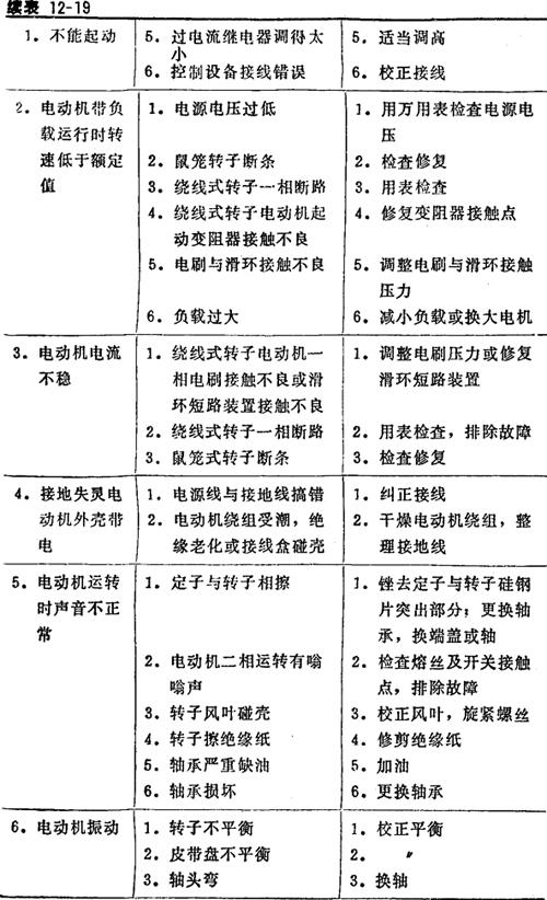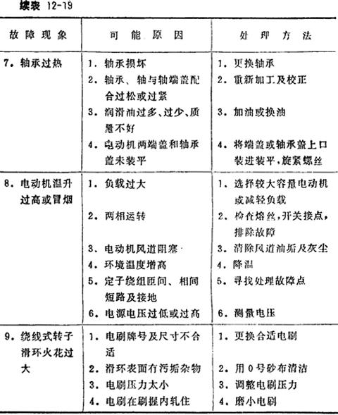 表12-19 三相异步电动机的常见故障及处理方法