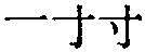微小 微小寸(~步;~善;~忱;寸尺;分寸;肤寸;扶寸;环寸;铢寸;~量铢称) 片 细(细小;细微;微细) 眇(眇眇;眇小 眇少;眇么;眇末;琐眇;微眇;蕞眇) 杪(杪杪;杪小) 渺(渺小;微渺) 纤(纤小;纤末;纤靡) 区(~~之数) 碎(~~) 藐小 钉头 秒末 担石 涔勺 圭勺 发漂 锱介 浅屑 摽末 幺小 极小 蚍蝣 毫毛 微末 微浅 涓微 抑微 微微 铢两 铢分 铢秒 铢锱 涓埃 涓毫 涓豪 涓壤 尺方 尺地 蚁鼻 佌佌 丁点 锥刃 锥刀 猥佌 锱介 蔑如 箴末 弹丸黑子 蕞尔弹丸一丝一毫 东西细小:茧栗角 轻小,细小:轻眇 轻微,细小:轻小 微小,细微:豆羹 细微,微小:幺蔑 事物微小不足称:尘露 微小、微不足道:仨瓜俩枣 精细微小:铢 很微小:毫丝 毫黍 感叹十分微小:眇乎小哉 非常微小:太仓稊米 眇乎其小 非常微小,不值得一谈:渺不足道 极其微小:芒忽 磨螘 恒河一沙 毫发丝粟 涓埃之微 量或体积极小:不丁点儿 微小的样子:宛 闵绵 闵绵 (极小:微小) ☚ 细微 细密1 ☛ 寸cùn仓困切,去慁。 ❶长度单位,一尺十寸。《楚辞·卜居》:“尺有所短,~有所长。” ❷极小或极短。《淮南子·原道》:“不贵尺之璧,而重~之阴。” ❸寸口,中医脉位之一。《云麓漫钞》卷十:“~下为关,关下为尺。” 寸❶寸口脉的简称。《素问·经脉别论》:“气口成寸,以决死生。” ❷寸关尺的寸部。 ❸同身寸。详该条。 寸 寸计量单位。《资治通鉴·唐纪·高祖武德八年(公元625年)》: “(九月)癸卯,初令太府检校诸州权量。”胡三省注: “检校其轻重大小也。唐制: 凡度以北方秬黍中者,1黍之广为分,10分为寸,10寸为尺,1尺2寸大尺,10尺为丈。” ☚ 从驾涉远 大斗 ☛ 寸cùn❶长度单位,1寸等于10分。 ❷形容短小。如:寸步难行,寸草不留。 ❸中医切脉部位名,又叫寸口。 ❹姓。 寸 寸长度单位名。十分为一寸,十寸为一尺。古人以身体来估计物体的长短,以中指上指端到中节上一纹的长度为一寸, 即所谓“布指知寸” 。历代寸的长度随尺的长度变化, 为一尺的十分之一。1928年国民政府颁布度量衡市用制, “寸” 为“市寸” 的简称。参见“尺” ☚ 分 尺 ☛ 寸cùnⅠ (长度单位) cun,a unit of length (=1/3 decimetre) Ⅱ (极短或极小) very little;very short;small: ~ 功 small contribution;meagre achievement;~ 进 a little progress Ⅲ (姓氏) a surname: ~ 居敬 Cun Jujing ◆寸步 a tiny step;a single step; 寸步不让 not to yield a (single) step;dispute every inch of ground;fight every inch of the way;give not an inch;hold one's ground;not to make the slightest concession;never to give away one inch;refuse to budge an inch;refuse to yield an inch; 寸步不离 follow sb. closely;keep close to;not let sb. out of one's sight;not to [never] move a step from;not to leave sb. by a foot [an inch];not to leave sb. at any time; 寸步难行 be difficult for sb. to move a single step — can't do anything;difficult to move even one step;cannot go a step;cannot move a single step;find it extremely hard to make a single move;forced into a strait;unable to move a tiny step;unable to do a thing;unable to move one inch forward; 寸草不留 complete devastation (of land);be devastated;be left in complete devastation;leave not even a blade of grass;not to leave even a blade of grass; 寸草春晖 a blade of grass to repay the spring brightness — to be said of greatness of maternal love;repay maternal love with one's gratitude; 寸断 be broken up into very short pieces; 寸关尺 {中医} cun,guan and chi,three places at the wrist where the pulse is usually taken; 寸金难买寸光阴 [谚] An inch of gold will not buy an inch of time.;Money can't buy time.;Time is more precious than gold.; 寸进 inching; 寸土必争 fight for every inch of land;contest every inch of ground;dispute every inch of one's ground;Even an inch of land has to be fought for.; 寸心 feelings; 寸阴 [书] time indicated by a shadow moving a cun — a very short time 寸cùn❶寸步不离|寸步不让|寸步不移|寸步难行|寸草不留|寸草不生|寸草春晖|寸长尺短|寸椽片瓦|寸断肝肠|寸积铢累|寸缣尺楮|寸箭之功|寸进尺退|寸量铢称|寸木岑楼|寸善片长|寸丝不挂|寸莛撞钟|寸土必争|寸土寸金|寸阴尺璧