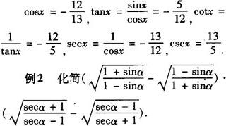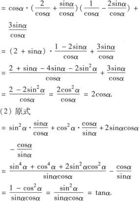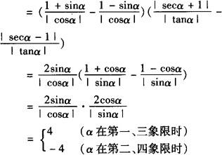 释义 | 三角函数线 如图,角α的三角函数值可以用单位圆中的有向线段表示:sinα=MP,cosα=OM,tanα=AT,cotα=BS MP、AT的方向和y轴的正向一致时是正的,相反时是负的,OM、BS的方向和x轴的正向一致时,是正的,相反时是负的.单位圆中的有向线段MP、OM、AT、BS分别叫做角α的正弦线、余弦线、正切线和余切线. 例1 已知 解 因为 (1)若x是第一象限的角,则 (2)若x是第二象限的角,则 分析 利用同角三角函数平方关系式化简,注意“1”的灵活运用. 解 原式 例3 把下列各三角函数化为锐角的三角函数: 解 (1)sin(—998°)=—sin998°=—sin[3×360°+(—82°)]=—sin(—82°)=sin82°. 例4 已知方程x2—3/2x+a=0的两根为sinα,sinβ,则a的取值范围是( ). A.|a|≤1 B. C.a≥1/2 D.以上都不对 分析 很多学生没有挖掘出题中的隐含条件sinα+sinβ=3/2,不知原方程有两正根.(1)认为 解 ∵sinα+sinβ=3/2,根据正弦函数的有界性易知0 例5 化简: (1)cosα(2secα+tanα)(secα—2tanα)+3tanα;(2)sin2α·tanα+cos2α·cotα+2sinαcosα—cotα. 分析 注意到函数名称多的特点,把切割化弦后再化简. 解 (1)原式 |
