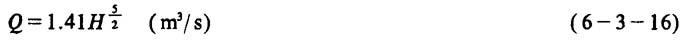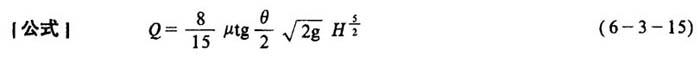 释义 | 三角薄壁堰法 [说明]三角薄壁堰是废水测流中最常用的实用测流装置(如图6-3-2),适用于水头0.05m≤H≤0.35m,流量Q≤0.1m3/s的废水流量的测定,使用方法简单,测定结果准确。 式中 Q——任意角度过堰的废水流量(m3/s) μ——流量系数,约为0.6 θ——堰口夹角(度) g——重力加速度(9.81m/s2) H——堰的几何水头(m) [讨论]当水头H=0.02~0.20m,θ=90°时,直角三角堰的流量计算可简化为: 当H=0.301~0.350m时,直角三角堰的流量计算式为: 当θ=120°时,则: 当θ=60°时,则: |