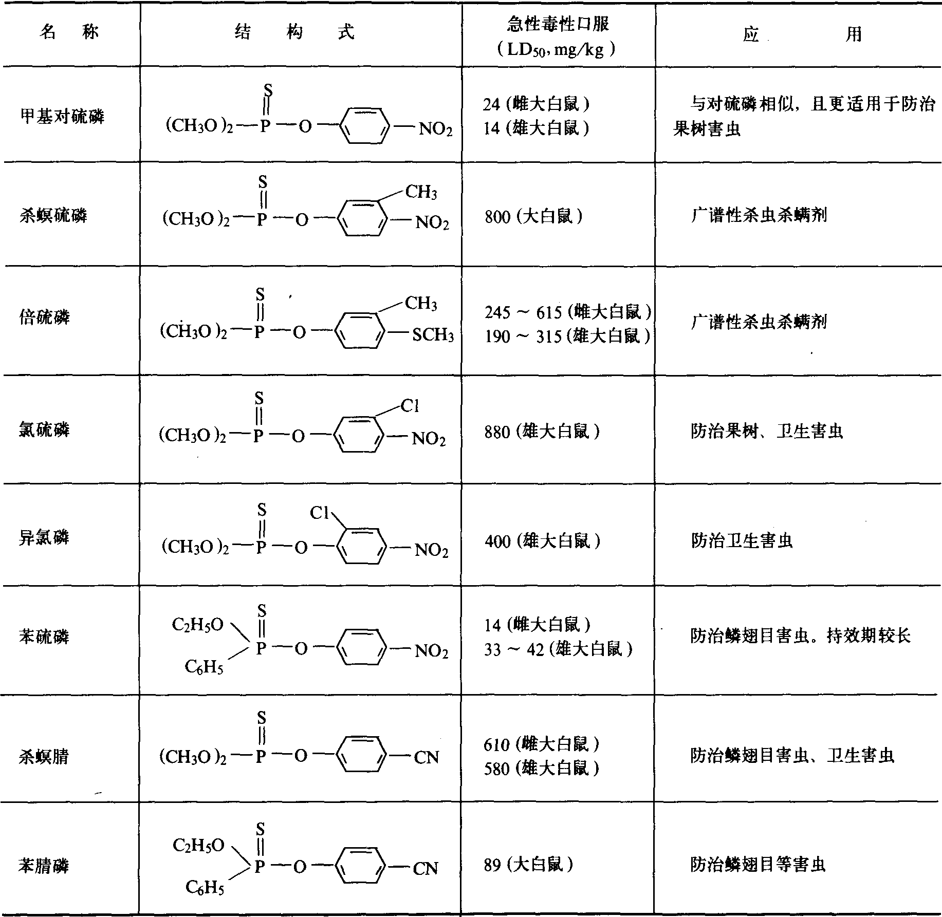 释义 | 对硫磷parathion高毒广谱性硫逐式一硫代磷酸酯类杀虫杀螨剂,中国也称作一六○五(E-605)。化学结构式: 性能 纯品为淡黄色无臭油状液体,低温下为针状结晶,熔点6.1℃。在中性及酸性条件下较稳定,碱性条件下易分解。加热会发生异构化,加热到170℃以上则迅速分解。在紫外线下会部分分解。微溶于水,25℃时水中溶解度为24毫克/升,能溶于苯、丙酮等多种有机溶剂,微溶或不溶于石油醚及矿物油。对高等动物毒性很高,大白鼠急性口服致死中量(LD50)3.6毫克/千克(雌),13毫克/千克(雄);急性经皮致死中量(LD50)6.8毫克/千克(雌),21毫克/千克(雄)。药剂如通过眼睛、呼吸道、皮肤进入高等动物体内也很危险。它由于在生物体内代谢氧化为非硫代类似物,即对氧磷(paraoxon),而增强了毒性。对硫磷对害虫具强烈触杀与胃毒作用,也有一些熏蒸作用。气温升高时熏蒸作用更为明显。无内吸性,有一定内渗作用,叶面施药能局部渗入叶内组织,而杀死相应叶背面的害虫。 应用 对硫磷可应用于多种作物防治多种害虫和植食性螨类,同时也对天敌昆虫和捕食性螨类以及蜜蜂等益虫有很强毒性。主要采用乳油对水喷雾,在棉花、水稻、果树、大豆等作物上防治同翅目、鳞翅目、半翅目、鞘翅目、双翅目等咀嚼式口器和刺吸式口器害虫及叶螨。持效期约一星期。对某些虫卵、螨卵也有杀伤作用。对小麦等进行种子处理,可防治蝼蛄等土壤害虫。制成颗粒剂撒入玉米心叶期喇叭口,可防治玉米螟。一般使用下无药害,但瓜类,尤其是瓜苗敏感。在一定气候条件下,对某些观赏植物、梨和某些品种的苹果有药害。种子处理时,某些高粱品种较敏感。 对硫磷毒性高,在贮运和使用时严格注意安全防护。高秆作物地内禁止喷雾。蔬菜、茶树上禁用。禾谷类作物和果树上施药的收获前禁用期至少为30天。 近似品种有甲基对硫磷、杀螟硫磷等8种(见表)。 对 硫 磷 类 似 品 种 对硫磷parathion又称一六○五、乙基一六○五。广谱高毒有机磷杀虫剂。化学名称为O,O-二乙基-O-(对硝基苯基)硫代磷酸酯。化学结构式如下。纯品为白色长针状结晶或淡黄色液体,熔点6℃,沸点157~162℃ (80.0 Pa),20℃时蒸气压503.96×10-5 Pa,密度1.265,25℃时水中溶解度24 mg/kg,可溶于苯、丙酮、乙醇等大多数有机溶剂。在中性和弱酸的介质中稳定,遇碱分解,光和热能加速分解。工业品为淡黄色至棕色油状液体,有大蒜臭味。具有胃毒、触杀和一定的熏蒸作用,对某些鳞翅目害虫有一定杀卵作用,无内吸性但能渗透植物组织。对昆虫作用快,高温时杀虫作用加快,但药效期相应缩短,是昆虫体内胆碱酯酶的抑制剂。进入昆虫体内,氧化成毒力更大的对氧磷,与胆碱酯酶结合,使昆虫中毒死亡。曾广泛用于防治粮食、棉花、果树和林木的多种咀嚼口器、刺吸口器害虫和螨类。对大鼠急性口服LD50为4~13 mg/kg,急性经皮LD50为6.8~21 mg/kg,急性吸入最低致死浓度为10 mg/m3(2 h) 。FAO与WHO建议ADI值为5 μg/kg,作物上最高残留限量为0.3 mg/kg。中国禁止在蔬菜、茶叶、果树、中草药上使用,粮食作物收获前30天内禁止使用。 对硫磷有机磷杀虫剂,又称一六○五。1946年发现其杀虫作用,1947年美国开始生产。油状液体,25℃的水中溶解度为24ppm。能防治400多种害虫和螨类。在碱性溶液中易分解,对人畜有剧毒作用,中国于1983年后停止使用。 |