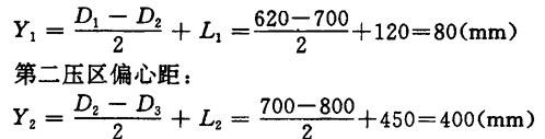 释义 | 三辊压榨的偏心距的计算 【说明】 三辊压榨的两个压区压榨线压是否呈直线的判断方法与双辊压榨类同,如图1-15-64所示。 1.第一压区偏心距的计算 【公式】 式中 Y1——第一压区偏心距(mm) D1、D2——下辊和中间辊直径(mm) L1——垂线(右)与下辊间距(mm) 2.第二压区偏心距的计算 【公式】 式中 Y2——第二压区偏心距(mm) D3——上辊直径(mm) L2——垂线(左)与中间辊面的间距(mm) 【例】 如图1-15-64所示,主动沟纹底辊D1=620mm,真空传动辊D2=700mm,L1=120mm,上石辊D3=800mm,L2=450mm,则偏心距为: 第一压区偏心距: |