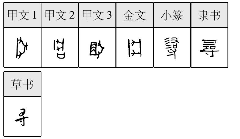 【析形】会意字。甲骨文、金文字形像两臂拉伸以丈量之形。篆、隶字形讹变,初形不显。 【释义】《说文》:“度人之两臂为寻,八尺也。”指伸开两臂的长度,合古代的八尺。《诗经·閟宫》:“是断是度,是寻是尺。”[寻常]指短距离或小面积。《左传·成公十二年》杜预注:“八尺曰寻,倍寻为常。”引申比喻普通、平常。刘禹锡《乌衣巷》:“旧时王谢堂前燕,飞入寻常百姓家。”“寻”本是人的两臂张开的长度,人两臂张开时,看上去有所期待,故引申为探究、研究、追寻之意。[寻根问底]追求根底,一般指追问一件事的缘由。 【shape analysis】It is the associative character.In Oracle and Bronze Inscriptions it looks like two arms stretching out to measure. 【original meaning】The length of two arms stretching out,that is eight feet.When the two arms open,it looks like looking forward for something,so it also means chasing.