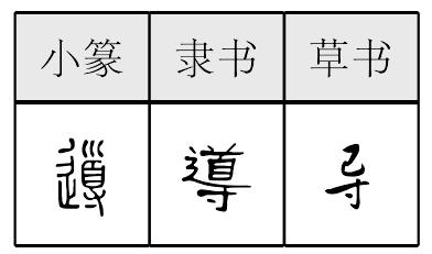 dǎo導,形声,从寸,道声,本义为引路,引申为引导、传导、开导等。《简化字表》简作“导”,据草书楷化。 |