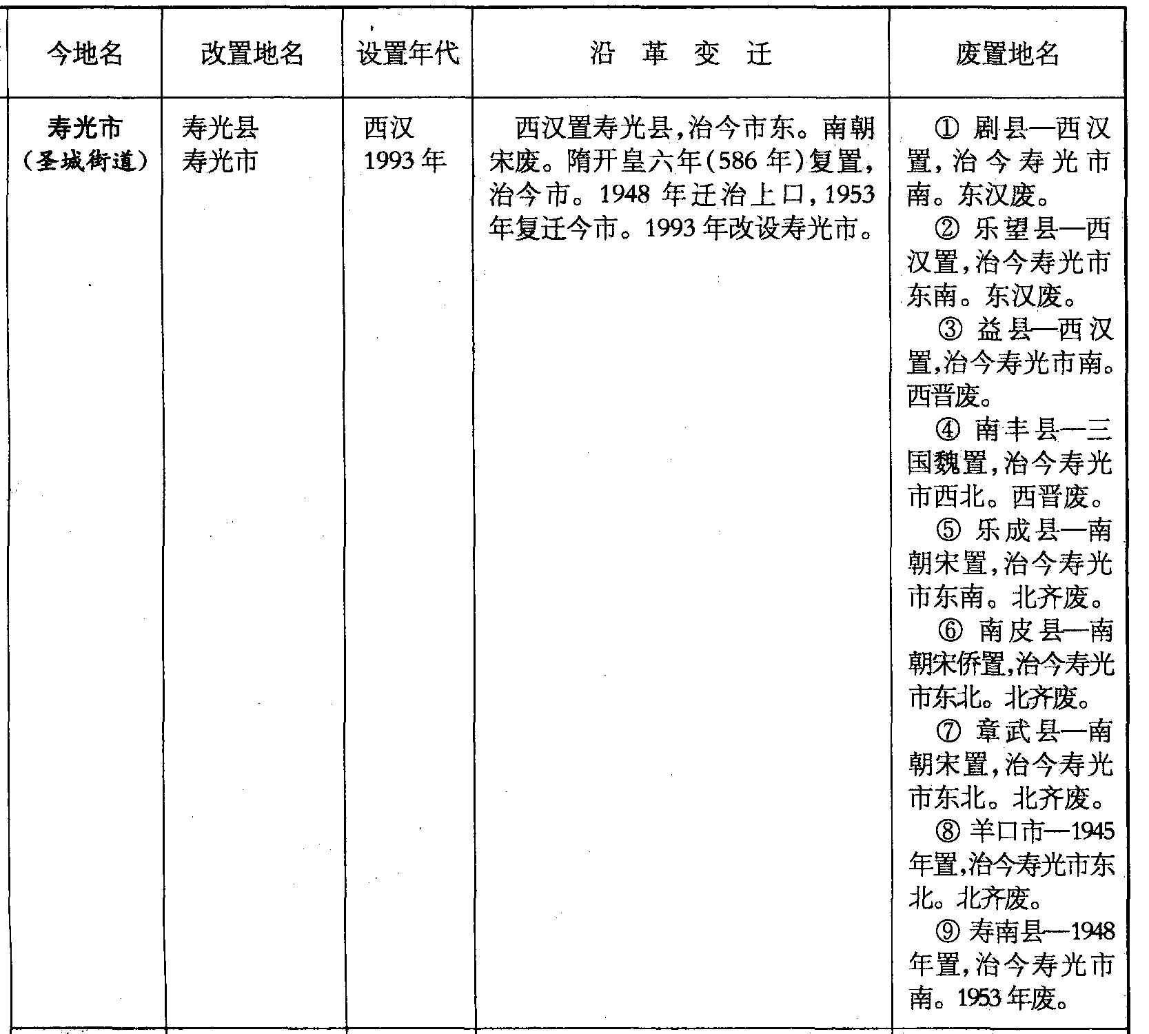 ❾寿南县—1948年置,治今寿光市南。1953年废。