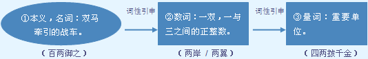 释义 | ![]() 数 一个加一个是两个(一般用于量词和“半、千、万、亿”前)。 【例句】~年来带工老板从她身上实际已经收入二百三十块钱了。 【同义】二 【辨析】读数目字只用“二”;小数、分数和序数只用“二”;在多位数中,百、十、个位用“二”;千、万、亿的前面,“二”、“两”一般都可用;在一般量词前,除“位”外,只用 “两”; 在传统的度量衡单位前,除“二两”外,“两”、“二”一般都可用,新的度量衡单位前一般用“两”;后面直接接名词时一般用“两”。 ❶数目,一个加一个。常用在量词及“百”“千”“万”“亿”等数词前面,构成数量词组或数词作句子成分。 a.作定语。 本期开设~门选修课程|海湾里停泊着~只船|苏联有~亿多人。 b.作补语。 走了~小时|看了~遍|打了~回|去了~趟。 c.作宾语。 买了~斤|吃了~个。 d.作状语。 我去过两次,~次都没见到他|~下就打死了妖怪。 ❷表示概数,相当于“几”。常构成数量词组作相应的成分。 a.作定语。 你多买~瓶酒回来|喝他~斤白干,咱哥几个痛快痛快。 b.作补语。 过~天再说吧|多跑~趟就熟悉了|你们就多住~天吧|打他~下就是了。 市两的通称,一斤的1/10。一般组成数量词组作句子成分。量词“两”不能与数词“两”连用。 a.作定语。 一~米饭|二~白酒。 b.作主语、宾语。 这种茶叶很贵,八~太多了,就称三~吧。 双方。常用在固定词组中。 模棱~可|~败俱伤|~相情愿|~全其美。 【辨】 (一)两和二:见“二”。 (二)两和俩:都可表示数。 区别: ❶读音不同。“两”读作liǎng;“俩”读作liǎ。 ❷表示的意义不同。“两”是数词,表示数目“二”;“俩”表示“两个”。 ❸用法不同。“两”后边要用量词;“俩”后边不再用量词。 ❹词性和语法功能不同。“两”还有名词、量词用法;“俩”没有这两种用法。 【误】 兄弟两私自下河游泳,回来被妈妈狠狠地教训了一顿。(“两”后边应加量词“个”或改为“俩”) 【近】 〈数〉二 【词语】 两败俱伤 两边 两边倒 两便 两回事 两极 两可 两码事 两面 两面三刀 两难 两栖 两全 两相情愿 两小无猜 两袖清风 两样 两翼 两者 字源解说 “两”是“辆”的本字。两,金文 ![]() ![]() ![]() ![]() ![]() ![]() ![]() ![]() ![]() ![]() ![]() ![]() ![]() ![]() 附 文言版《説文解字》:兩,二十四銖爲一兩。从一; ![]() 附 白话版《说文解字》:两,重量单位,二十四铢为一两。字形以“一”为字根; ![]() 引申线索 ![]() 【字族索引】 两 【同音字】 liǎng |