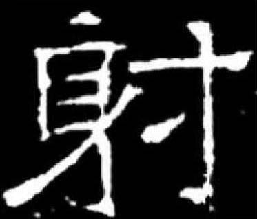 射箭 射箭射 彃 舍拔 决拾 贯鹄 鸣骹飞箭 发矢 发箭 放箭 持弓发箭:操弧 准备射箭:拈弓搭箭 发射良箭:驺发 用绳系在箭上射:弋(~获) 用箭射鸟:弋射 用箭射飞鸟:射飞 射猎禽兽:射生 饮酒射箭:饮射 骑马射箭:驰射 驰弋 用箭射靶:射招 射的 射侯 射帖 众箭向同一目标射击:簇射 乱箭集射:丛射 暗中放箭射人:放冷箭 射出的箭又密又多:雨射 箭发如雨 矢如雨下 矢如雨集 矢下如雨 射箭的力量极强:没矢 射箭力量巨大:射石饮羽 没卫饮羽 没金铩羽 没金饮羽 弯弓饮羽 箭射得很深:衔竿 箭深入所射物体:饮羽 射穿箭靶:破帖 洞穿衣甲:贯甲 ☚ 射出 开弓 ☛ 射shè;yì(一) 神夜切,去祃。 ❶开弓发箭。《韩非子·外储说》:“砥砺杀矢,彀弩而~。” ❷照射,喷射。马祖常《琉璃帘》:“月华远~离离白,灯影斜穿细细红。” ❸中伤。《资治通鉴·汉文帝前六年》:“今日即位而明日~人,忠谏者谓之诽谤。” ❹追求,追逐。《新唐书·食货志》:“豪贾~利。” ❺猜度。《吕氏春秋·重言》:“是何鸟也?王~之。” (二) 羊益切,入昔。厌弃。《诗·小雅·车舝》:“式燕且誉,好尔无~。” 射❶西周选士任官考试内容之一。西周选士须进行射、御考试。射,即射箭。其考试标准有五。一曰“白矢”,即要穿透箭靶,露出箭头,以观其臂力。二曰“参连”,即第一箭发出后,要有三箭连发,以察其射速。三曰“剡注”,即矢入箭靶要羽颈高、箭头低。四曰“襄尺”,即君臣同射时不得与君并排,须后退一尺,以别尊卑。五曰“井仪”,即四支箭射中箭靶,要成“井”字形,以考察箭法是否准确。 ❷科举时代武科考试内容之一。即射箭。凡武学入学考试,以及武乡试、武会试等均有此项考试。又分为骑射和步射。历代考试方式及标准各有不同,监射官之设置亦有别。参见“骑射”、“步射”。 射 050 射古为䠶, 弓弩发于身而中于远之意。 1963年山西朔县峙裕村出土石䃚证明, 我国在28700年前已用弓矢习射。夏代以后弓矢成为战争中的主要兵器,教育的主要内容(参见庠序、“六艺之教”条)。殷周以后青铜冶炼技艺发展,箭镞改用铜制,使射的威力大为增强,射成为选士、练兵、演礼的主要手段。战国以后出现了弩射与骑射,进一步发展了射的技艺与应用范围。在长期封建社会中,历代统治者都十分重视射。直到满清八旗兵弓用八力,箭长三尺,镞长五寸,是极具杀伤力的武器。近现代射的军事意义减弱,而体育意义增强,射已成为世界性体育竞赛项目。由于弓箭制作技术不断更新,使射远失去了竞赛意义,竞赛只限于射准了。 ☚ 武术 后羿 ☛ 射 射官名。商殷时置。《辞海》:“射: 官名。商代设置,掌射。见于甲胄卜辞。常以100人为小队,称 ‘百射’或 ‘射百’。300人为中队,称 ‘300射’ 或 ‘射300’。” ☚ 舍利小将军 射人 ☛ 射䠶shè❶用推力或弹力送出。如:射击,发射,扫射,射程。 ❷液体受压后从小孔急挤而出。如:喷射,注射。 ❸放出。如:辐射,射线,反射。 ❹有所指。如:影射,暗射。 射[䠶]shèⅠ ❶ (用推力或弹力送出) shoot; fire: 慢 ~ slow fire; 能骑善 ~ be a good horseman as well as a crack shot; be known for one's equestrian skill and marksmanship; 扫 ~ strafe; ~ 进一球 kick the ball into the goal; score a goal; 速 ~ rapid fire; 他拉弓把箭 ~ 了出去。 He shot the arrow from the bow. 他连续3次 ~ 中靶心。 He hit three bull's eyes in succession. ❷ (液体受到压力迅速挤出) discharge in a jet; jet; spout: 喷 ~ spout; spurt; jet; 注 ~ inject ❸ (放出) send out (light, heat, etc.): 反 ~ reflect; 光芒四 ~ radiate brilliant light; 探照灯 ~ 出一道强光。 The searchlights projected powerful beams of light. 月光透过窗户 ~ 了进来。 The moonlight streamed in through the window. ❹ (有所指) allude to sth. or sb.; insinuate: 影 ~ insinuate Ⅱ (姓氏) a surname: ~ 慈 She Ci ◆射靶 shoot at the target; 射表 {军} firing table; 射程 range (of fire); reach; throw; flightshot; gunshot; carry; actual range; firing range; 射弹 {航空} projectile; lead missile; 射电 {电磁} radio; 射干 {植} blackberry lily; Belamcanda chinecsis {药} rhizoma belamcandae; Pardanthus; Belamcanda sinensis; 射击 shoot; fire; {体} shooting; firing; 射极 {物} emitter; 射箭 shoot an arrow; discharge an arrow; let fly an arrow; {体} archery; 射角 angle of fire; angle of depression; {军} elevation; quadrant angle; quadrant elevation; 射界 area of fire; firing area; field of fire; 射精 spermatization; gonobolia; ejaculation; the ejaculation of semen; sper ̄ matism; 射孔 {油工} perforation; gun perforation; 射猎 hunting with bow and arrow or firearms; 射流 jet-flow; vein; {物} jet; filament band; shooting flow; fluidic; jet current; jet stream; efflux; 射门 {体} shoot (at the goal); 射频 {讯} radio frequency; 射频管 RF tube; 射频谱 radio-frequency spectrum; 射气 emanation; emanium (Em); 射手 shooter; gunner; marksman; 射束 {电} beam; 射水鱼 {脊椎} archerfish; 射速 {军} firing rate; 射线 {物} ray; beam; half-line; 射线照相 radiogram; radiograph; 射影 {数} projection