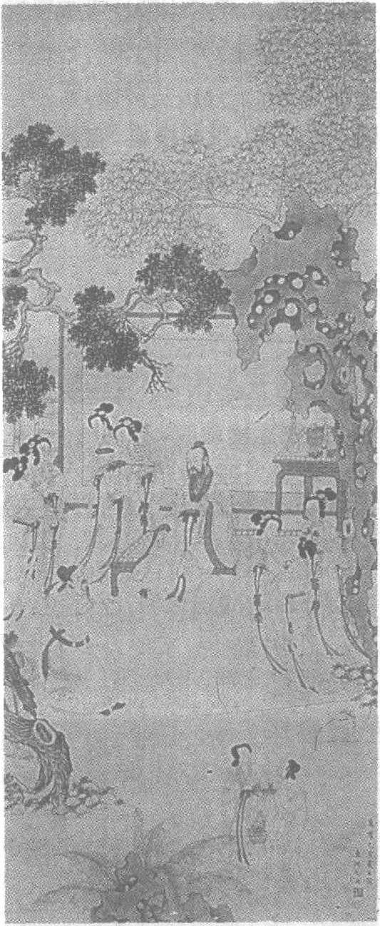 释义 | 尤求红拂图轴 尤求红拂图轴明。尤求绘。纸本墨笔。纵122.8厘米,横45.7厘米。北京故宫博物院藏。尤求,生卒年未详,约生活于明嘉靖至万历年间。字子求,号凤山(一作凤丘),江苏苏州人,移居太仓。是仇英之女婿,得到家学渊源。工写山水,兼长人物,尤善白描,学刘松年、钱舜举。又善于仕女画,与仇英画品有异曲同工之妙,继仇英以名世。红拂,原名张出尘,是隋末权贵杨素的侍女,因手持红拂而得名。李靖以普通百姓的身份求见杨素,红拂见他抱负不凡,十分仰慕,遂夜奔归李,与之结为夫妇,后辅李靖建立功业。此图所绘正是李靖求见杨素时的场面。幽美的庭院中,中立一素面屏风,屏风前后两旁有湖石、树木点缀,方桌上列香炉、花瓶。杨素漫不经心地坐在屏前的矮榻上,态度安详,一副权贵的傲慢气派。李靖拱手坐于绣墩之上,举止谦和有礼,不卑不亢,眉宇间显出精明强干的气质。红拂女手持红拂,立于杨素身后,正凝神注视李靖,静听其陈述,神情关切。其他侍女环列在杨素左右,三两聚在一处窃窃私语,表情各异。两小侍女提壶端盏正欲上前献茶。李靖身后立一童子,肩搭斗笠,似随李靖同来。近景衬以古柏、湖石、蕉叶。笔法细密,构图严谨,人物景致井然有序,主体突出,陪衬得当。对人物神情的刻画,细腻生动。人物用白描法,线条流畅,深得仇英笔法。仕女体态优美,姿容秀丽,众多人物,神态各异。右下角自识:“万历乙亥夏日写,长洲尤求。”下钤<吴下尤求>、<凤丘>二印。 ☚ 陆师道溪山图轴 徐渭墨葡萄图轴 ☛ |