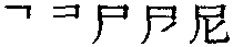 尼 金文; 篆ní[屍(人側臥形,意符)+匕(女子,意符)→尼(《説文》:“尼,從後近之,從尸,匕聲。”林義光認爲:“尼,像二人相昵形,實昵之本字。”後用以翻譯梵文“比丘尼”。省稱爲“尼”。指信佛出家的女子〈尼姑〉。由此可見,中國文化融會外來文化,幾乎到了使人不知不覺的程度。)] [清] 曹雪芹 《紅樓夢》(第十八回):“採訪聘買得十個小尼姑、小道姑都有了。” 陳獨秀《吾人最後之覺悟》:“康梁諸人,乘時進以變法之説,聳動國人,守舊黨尼(親近)之,遂有戊戌之變。” 尼ní(5画)