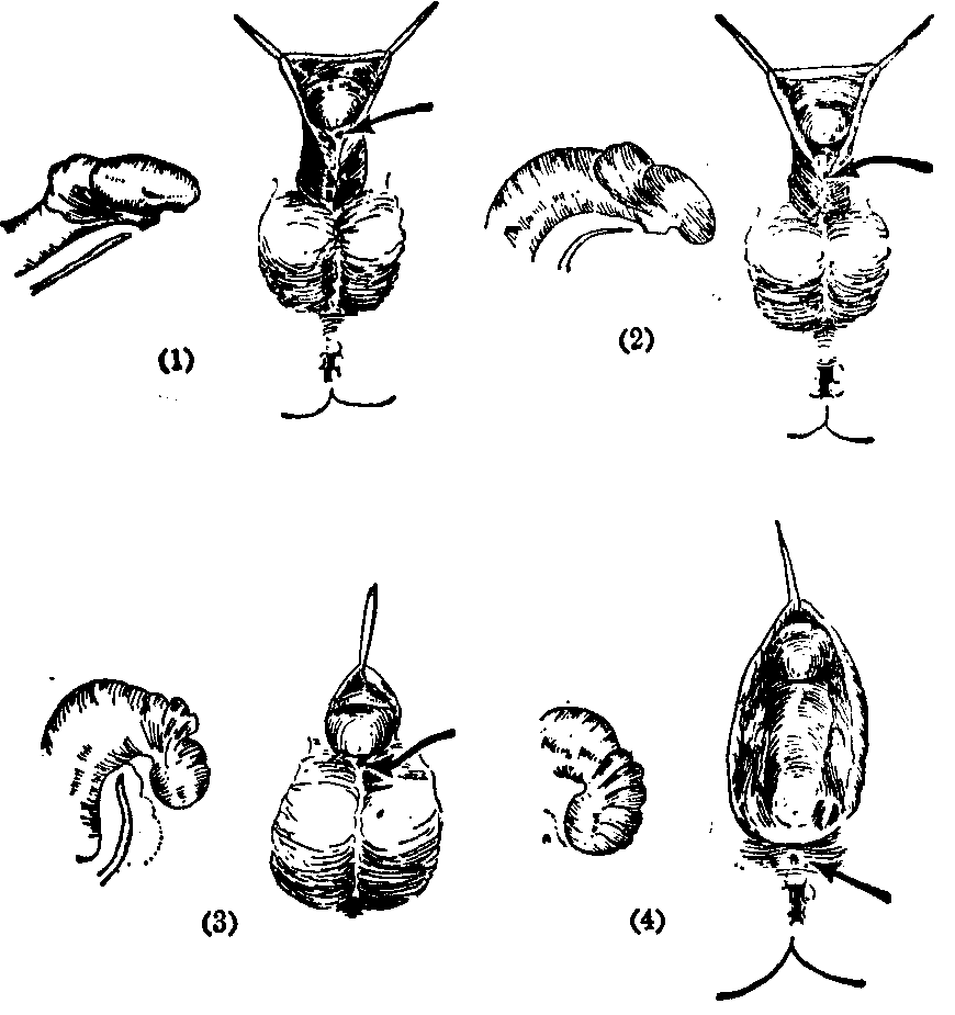 (1) 阴茎头型: 最为常见,畸形也最轻,尿道口位于包皮系带部,系带本身缺如。阴茎头向腹侧弯曲,腹侧无包皮,背侧包皮呈帽状覆盖,正常尿道口部位呈一小浅沟。畸形最轻者包皮与阴茎头均正常,仅尿道口位于系带部,正常尿道口处有浅沟状假口,易被忽略。 (2) 阴茎体型: 尿道口可位于阴茎体腹侧的任何部位,尿道口位置越靠近端,阴茎向腹侧弯曲愈重,尿道口位于阴茎体中部较多见,包皮呈帽状覆盖于阴茎头背面。 (3) 阴茎阴囊型: 尿道口位于阴茎根部与阴囊交界处,阴茎向腹侧严重弯曲。阴囊常对裂,如伴患隐睾则似女性阴唇。 (4) 会阴型: 尿道口位于会阴部,阴茎极度向腹侧弯曲。发育不良的阴茎常被帽状包皮和分裂的阴囊所遮盖,外生殖器酷似女性。如合并隐睾则呈男性假两性畸形。会阴型尿道下裂常合并直肠肛管畸形。 诊断多依靠局部检查。有严重阴茎下弯,合并双侧隐睾患儿,须与肾上腺性征异常病及其真性畸形鉴别。常用鉴定性别方法有 ❶检查细胞核性染色体组型,女性为XX,男性为XY。 ❷性染色质检查,正常女性阴道上皮细胞性染色质阳性率高于口腔,二者均于10%以上;而正常男性口腔性染色质阳性率为0~5%。 ❸尿17酮类固醇排泄量显著增高,提示肾上腺性征异常症可能性大。 ❹不能决定性别时,需剖腹探查,并作生殖腺活体组织检查。 治疗目的是使患儿外生殖器尽量接近正常,能控制尿流,成长后有生殖能力。 阴茎头型如无排尿障碍,无须治疗,如有尿道口狭窄,则作尿道口切开。 阴茎下弯程度轻者,可用阴茎背侧白膜紧缩术或一期完成改良埋藏皮条法尿道成型术(Denis-Browne);阴茎下弯程度较重者,可行分期的改良式皮条埋藏尿道成型术:第一期矫正阴茎下弯,可于2岁后进行,如伴有隐睾应同时完成睾丸固定术;第二期作改良式Denis-Browne尿道成型术,于7岁入学之前进行,两期手术间隔最少半年。尿道成形术前要求充分矫正阴茎下弯,尿道口无狭窄,如阴茎发育不良,可试用1~2疗程绒毛膜促性腺激素。应用包皮内板,裁剪缝成尿道转移至阴茎腹侧,一期完成矫正阴茎下弯及尿道成型术,效果也较好。 我国常用的手术,尚有于矫正阴茎下弯的同时,利用膀胱粘膜作成管状代替尿道,一期完成尿道成型术。 女性尿道下裂极罕见,尿道开口于阴道前壁,位于正常尿道口与膀胱颈之间,尿道口常有狭窄,如尿道口于膀胱颈则有尿失禁。轻度尿道下裂,可用尿道扩张治疗尿道口狭窄,即能解除排尿困难。尿失禁时须作膀胱括约肌及尿道成型术。 ☚ 尿道上裂 尿道瓣膜症 ☛ 尿道下裂 尿道下裂hypospadias先天性尿道畸形。检查病人之尿道外口,见其异位开口于尿道的腹侧,自阴茎头至会阴部中线上任何部位,均为尿道下裂。常伴有阴茎弯曲(弯向腹侧),隐睾,阴囊分裂,尿道口似阴道而颇似女性。根据尿道外口位置,尿道下裂可分为阴茎头型、阴茎型、阴茎阴囊型和会阴型。 ☚ 尿道上裂 晨滴 ☛ |