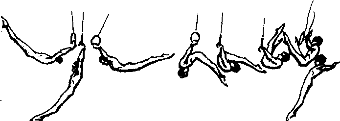 吊环简单下法之一。早在1932年奥运会体操比赛中曾作为吊环规定动作下法,70年代颁布执行的几届体操比赛评分规则曾将此动作定为A组,1989年国际规则已不收入此动作。其难度价值因体操技术的发展而有所降低,以致在体操教学、训练大纲中很少有这个动作内容。此动作是在屈体前转肩基础上完成的下法,因此,一直采用习惯的、传统的屈体前转肩技术加以完成。它的做法是悬垂后摆,摆至水平时,快速急剧地屈体、提臀,身体迅速向前翻转完成转肩;与此同时,两手用力撑压双环,并梗头立上体分腿向外“切环”随即放手;然后继续立上体、并腿、挺身落地,完成动作。70年代中后期,由于吊环悬垂大摆和前后高转肩技术已出现多年,因此完成这个动作常采用的习惯的、传统的和陈旧的技术逐渐被淘汰,到80年代,各层次不同水平的运动员已不再有人使用了。