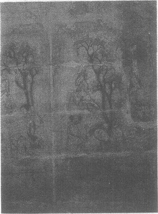 释义 | 屏风人物图壁画 屏风人物图壁画北齐天保二年(公元551年)。纵123厘米,横95厘米。山东省临朐县冶源镇崔芬墓北壁左下角壁画。1986年发掘。此墓墓壁绘屏风八幅,此为其中两幅。两幅的背景皆为绿树、假山,其中一幅树下铺方席一张,一位头梳双髻,身着窄袖长衫的男人曲腿席地而坐,头侧向一旁,双手撑地,身后一位侍女在为其按摩、拍击。另一幅树下亦铺席,一位留长髯,着宽衣男子,正伏案握笔而书,案上摆纸、三足砚和笔架,一侍女持灯侍立一旁。两幅屏风人物神态生动,有情节有景物,将上层社会闲散的风致表达得十分准确。 ☚ 潘恭寿重岩暮蔼图轴 玄武图壁画 ☛ |