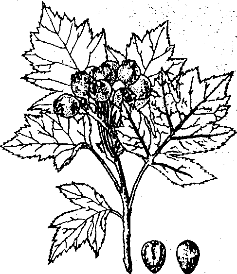 图 1 山 楂1. 果枝; 2. 果核