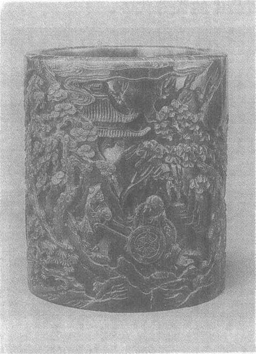 释义 | 山水人物图玉笔筒 山水人物图玉笔筒清。高18厘米。台北故宫博物院藏。笔筒呈圆柱形,上下垂直,圆唇折沿,以一块碧玉琢制。玉色深沉,周身无一点瑕疵,十分难得。笔筒外壁雕刻近景山水一幅,山石浑劲,古木苍翠,弯曲的石径隐约可见,重檐方亭弥漫在云雾之中。一位戴斗笠穿短衣的汉子推一两轮小车,上坐一身着长袍的人,其神态悠然自得。笔筒的雕刻风格质朴刚劲。口沿上有清高宗的御题诗。 ☚ 镂空牡丹玉花薰 秋山猎骑图玉笔筒 ☛ |