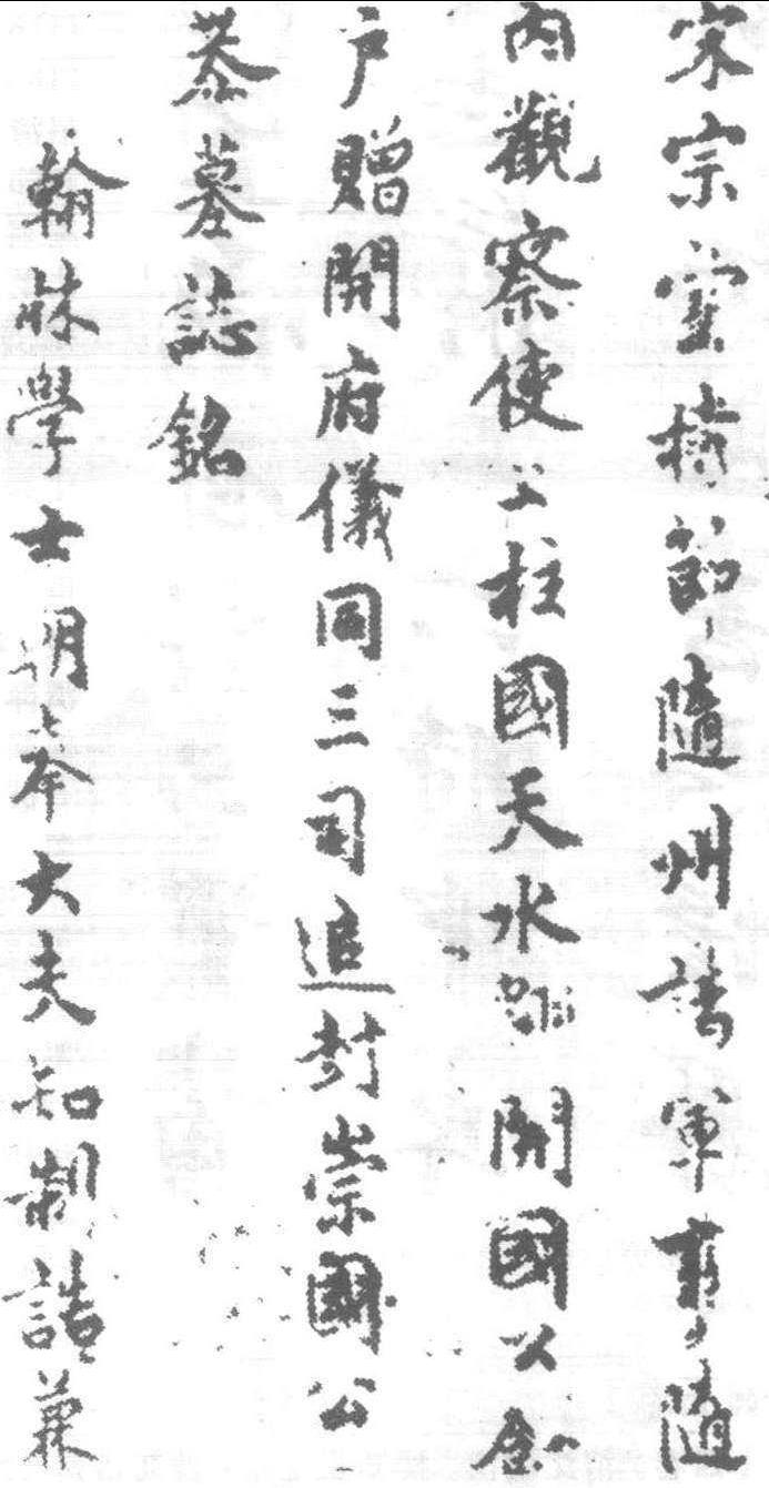 北宋·大觀元年 (1107)書。鄭居中撰,米芾書稿。此係宋宗室崇國公孝恭墓志銘稿,小楷書,近二千字。末載袁桷、 鄧文原、黄、柳貫、 揭汯、葉盛、吴寬七跋。 明張丑《清河書畫舫》曰: “多力豐筋,得緩紐急送之妙。”書風俊拔遒勁,屬芾晚年代表作。為廣東參政劉欽謨之故物。