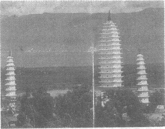 释义 | 崇圣寺三塔 崇圣寺三塔在云南大理县城西北郊的崇圣寺。三塔中一大二小,成三角形排列。大塔名千寻塔,高六十多米,为十六层密檐式建筑,方形,中空。各层正面中央开有券龛,以置大理石佛像。约建于唐代南诏保和时期。两小塔均为八角形实心砖塔,十层,高四十多米,塔身涂白色泥皮,各层分别雕有券龛、佛像、莲花、瑞云、花瓶等。塔顶各有三只铜葫芦。约建于五代时期。 ☚ 小雁塔 开元寺塔 ☛ 崇圣寺三塔 在云南大理点苍山应乐峰下崇圣寺内,亦称大理三塔。始建年代约在9世纪20年代唐长庆年间,三塔鼎足而立,大塔方形,共16层,高69米余(或58米余),线条流畅,造型美观。塔基上有“永镇山川”四字。塔内每层开券龛,置白色犬理石佛像一尊。南北两小塔,皆为八角形,实心,十层,高42米余(或38米余)。每层均雕有佛像、莲花、宝瓶等。 古代名物 > 宗教類(上) > 聖迹寳塔部 > 名塔 > 崇聖寺三塔 崇聖寺三塔 chóngshèngsìsāntǎ 座落於雲南大理縣城西北崇聖寺。塔凡三座,因稱。主塔名千尋塔,始建於唐代南詔國豐祐年間。方形,十六級,高二十丈七尺有餘,屬密檐式磚塔。塔頂四角各有一只銅鑄金鵬鳥,傳說用以鎮壓洱海之龍妖水怪。每層四面設龕,相對兩龕内供佛像,另兩龕爲窗洞。1978年維修時,在塔頂發現各種佛像幾百尊,有重二斤二兩七錢之純金觀音像、金質釋迦牟尼佛坐像等。千尋塔稍後,有南北兩座小塔,建於五代。兩塔均爲實心,八角形,十級,高十二丈六尺。塔身均塗一層白色泥皮,各層分别雕券龕、佛像、蓮花、瑞雲、花瓶等。與千尋塔合爲一組,俗稱大理三塔。參閱乾隆《大清一統志·大理府·寺觀》、民國《雲南通志·宗教考·佛教》、又《祠祀考·寺觀》。 崇圣寺三塔亦名“大理三塔”、“大理崇圣寺塔”等。在云南大理市旧县城西北苍山第一峰下原崇圣寺前。寺东为千寻塔,正式名称“法界通灵明道乘塔”,俗称“大塔”或“中塔”。建于唐南诏晚期。外方内空,自下而上逐渐收缩, 高69.13米,系多层密檐式砖塔,十六层。塔身最下部为石砌台基,高1.1米; 上层台基为砖砌须弥座, 高1.9米。塔内有井字形梯,原可分层而上。砖上有的兼有梵文和汉字, 各层神龛和顶部供藏各种佛像等大量文物,并有梵、藏、汉文写经。虽经历代修葺,仍保持唐代建筑风格,造型与西安市小雁塔相似。寺南、寺北均为小塔。约为五代或宋大理国初期建筑。各高42.19米,均系八角形多层式实心砖塔,各十层。三塔坐西面东,排列成三角形,千百年来,虽迭遭地震和风雨剥蚀仍巍然屹立于苍山洱海之间, 系云南现存最古砖石结构建筑物, 为研究我国古代建筑和佛教及南诏、大理国史的重要实物资料。解放后被列为全国重点文物保护单位。 崇圣寺三塔 崇圣寺三塔中国古塔。位于云南省大理市洱海畔苍山之麓。三塔鼎足而立,大塔始建于唐开成后(约8世纪),名千寻塔,两小塔建于10世纪。三塔本来建在号称百厦千佛的崇圣寺山门前,因地震与兵火,寺宇已毁,唯三塔安然兀立,可见当时建塔技术的科学合理性。大塔建在二层台基上,在第一层高大的塔身之上施密檐16层,内部为空筒16层,总高69.13 m,台上塔身每面宽9.85 m,第1层高13.5 m,以上各层塔身低矮。主塔之西70 m处的南北塔各高42.19 m,共10层密檐式八角形砖塔。相距97.5 m,塔身实心砖砌,外壁白色粉刷,各层分别雕有券龛、佛像等,两塔顶各有3只铜葫芦。1978年重修,清理出南诏大理时期文物600余件。全国重点文物保护单位。 崇圣寺三塔 崇圣寺三塔位于云南省大理市苍山应乐峰下。崇圣寺早已不存,唯三塔屹立。三塔呈鼎足之势,均为砖砌。其中主塔为千寻塔,高约70米,为16级密檐式方塔。形制与西安小雁塔相似,每层四面有龛,置白色大理石佛像一尊。塔顶卷刹圆和。塔的西面设门,内装有木骨架,循梯而上可直达塔顶。整个塔的外形弧线轮廓优美,16层塔檐更为古塔中罕见之例。关于此塔的建筑年代众说纷纭,但多数认为建于八世纪,即云南南诏国后期,唐朝中期。南北两小塔为八角形10级密檐砖塔,均高42米,每级设平座,每角有倚栏,有些层还设有斗拱。塔身有佛像、莲花、花瓶等浮雕,华贵而庄重。顶端为鎏金塔刹。两塔建于十世纪,即云南大理国时期,宋代初期。1979年维修主塔时发现了南诏、大理国的重要文物,如佛像、菩萨、写经、印章、瓷器等680余件。三塔造型美观,布局和谐,以苍山为背景,洱海为镜面,天气晴朗之日,蓝天白云之下,美丽无比,成为国内享有盛誉的塔群,被列为全国重点文物保护单位。 ☚ 太和宫金殿 曼飞龙塔 ☛ 崇圣寺三塔 崇圣寺三塔崇圣寺位于大理古城西北两公里的苍山应乐峰下,为南诏大理国时的一座规模宏伟的佛教寺庙。三塔是寺前的一组建筑群,故又名三塔寺,历经沧桑后,现寺庙已毁,三塔犹存。 ☚ 丽江古城 文献楼 ☛ 崇圣寺三塔 崇圣寺三塔全国重点文物保护单位。位于大理旧城西北苍山应乐峰麓。崇圣寺又名三塔寺。《续云南通志稿》载:“寺前有三塔,寺内有观音像。”寺院早已无存,唯一大二小三塔依然耸立。大塔居中,名千寻塔。建塔年代,云南地方文献所记出入甚大,《大理府志》云:“塔顶有款识,唐开元元年(713),南诏请恭韬微义造。”经考证,以南诏保和年间(824—839)建塔可能性较大。主塔高69.13米,十六层密檐,平面呈方形。各层每面的两边各砌单层小方塔,外观呈优美弧线轮廓,每层正面