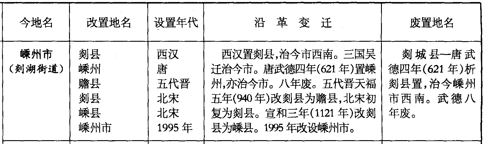 嵊州市(剡湖街道)剡县嵊州赡县剡县嵊县嵊州市西汉唐五代晋北宋北宋1995年西汉置剡县,治今市西南。三国吴迁治今市。唐武德四年(621年)置嵊州,亦治今市。八年废。五代晋天福五年(940年)改剡县为赡县,北宋初复为剡县。宣和三年(1121年)改剡县为嵊县。1995年改设嵊州市。剡城县—唐武德四年(621年)析剡县置,治今嵊州市西南。武德八年废。